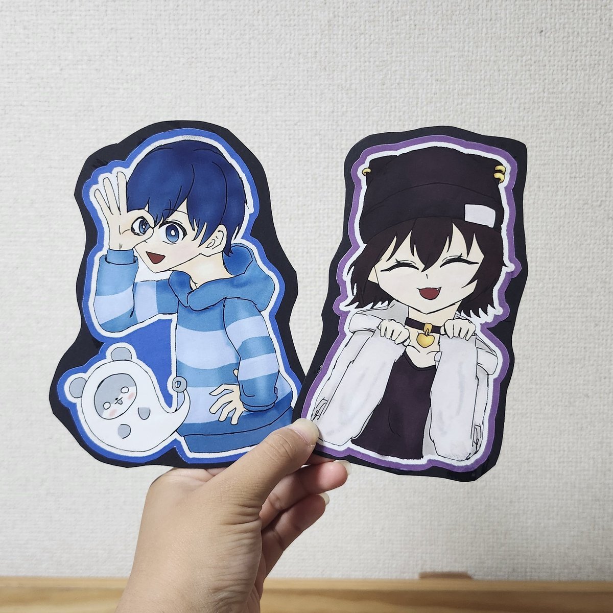 スペハロのために作ったボード! かげぴはほぼ初だけどめっちゃ可愛く描けた!! ばけりんのネムボは今回のビジュの仮面をイメージして作ったよ〜🐈‍⬛ 金色のピアス?は動きます!! #スペフェスハロウィン2025 #影絵と書いてファンアートと読ませたい #バケゆか絵 pic.x.com/tu4HN5ayhf