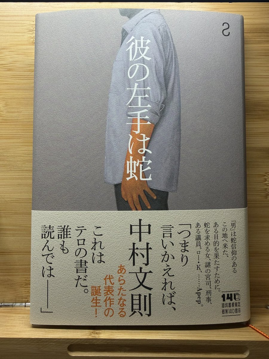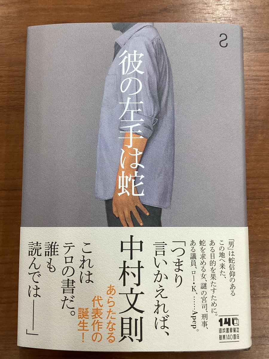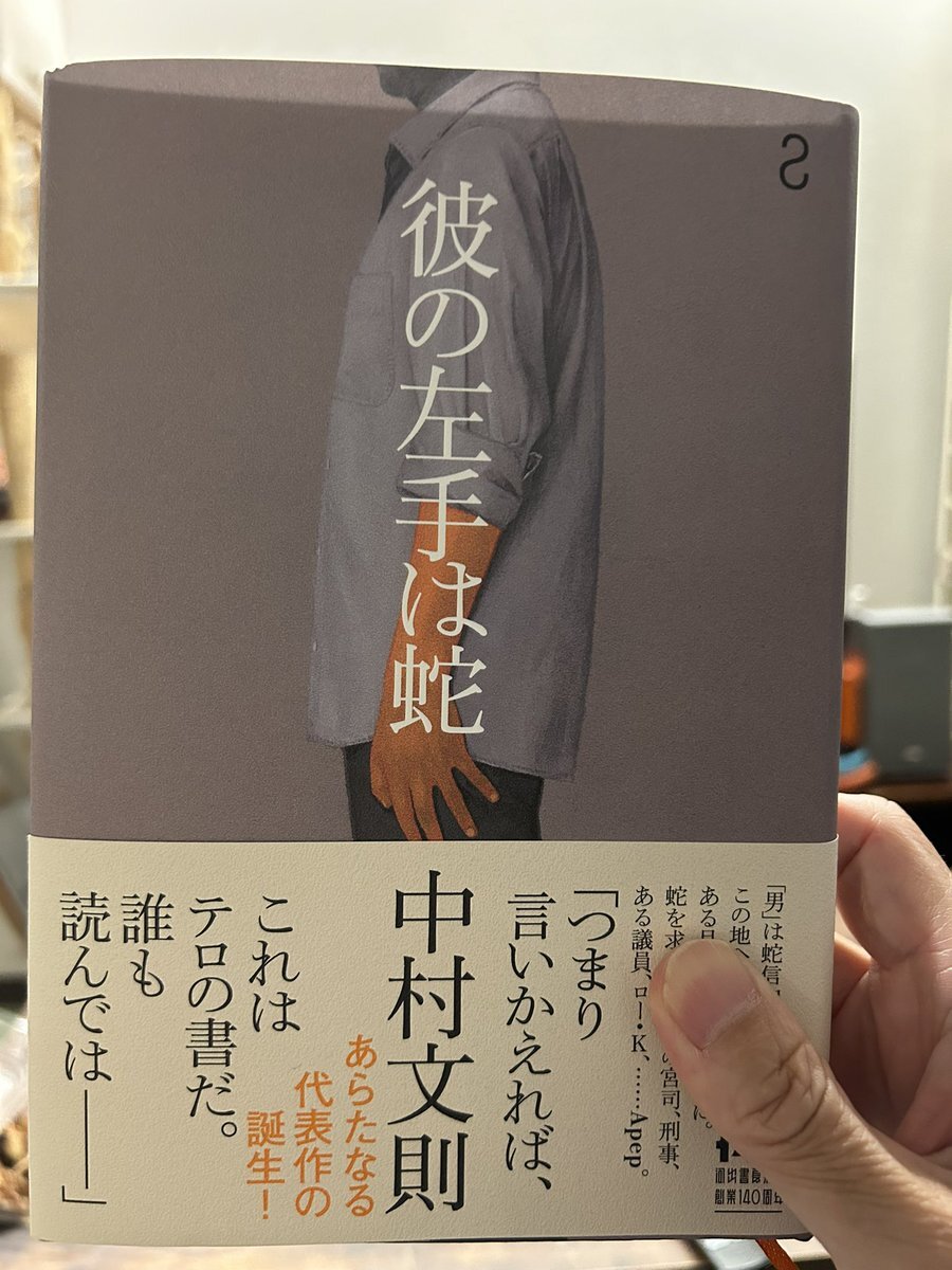 #中村文則『#彼の左手は蛇』を買いました😆 推し作家なのに、発売されてたのを知らなくて、フォロワーさんのポストで知る不覚😂 ソッコー、本屋に走ってゲットしました!! いやー、やっぱ好きだなぁ❤️とか思いつつ、スルメのように噛み締めながら読んで〼🥹 pic.x.com/YFumfE4FBn