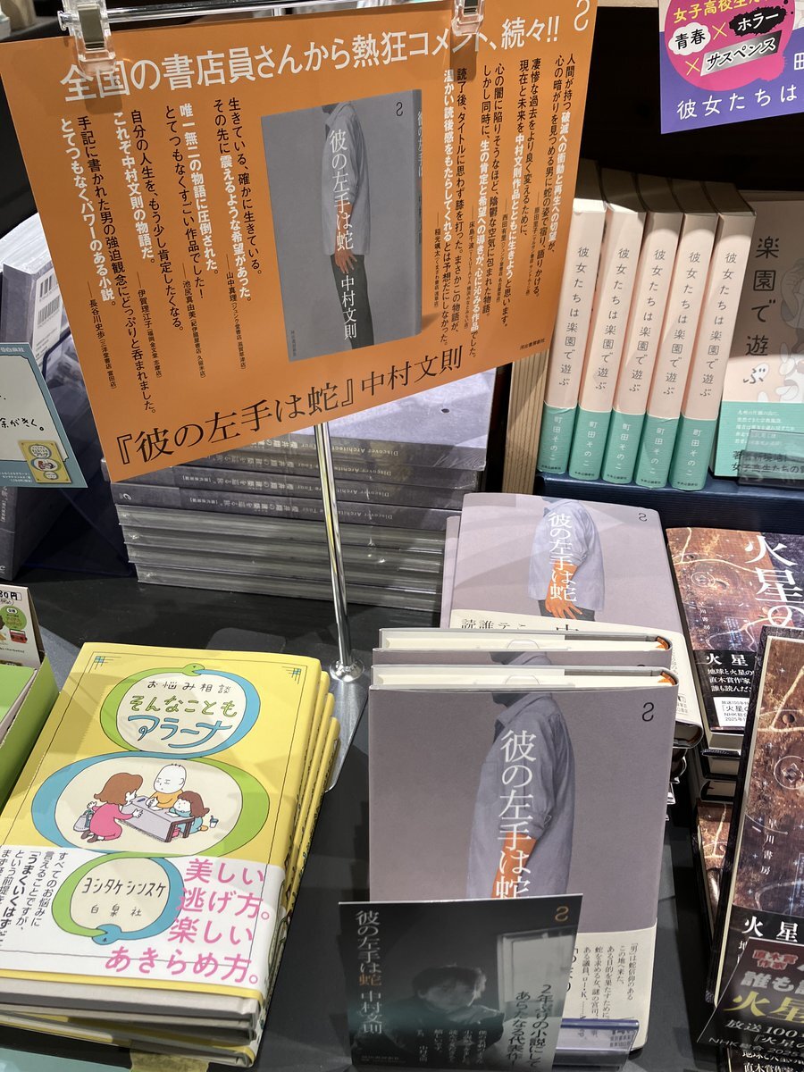 <新刊入荷> #中村文則 さん「#彼の左手は蛇」 (#河出書房新社) 唯一無二の物語に圧倒された! ※パネルに当店スタッフ推薦コメントあり 文学新刊コーナー(Q01-11)にて pic.x.com/F0XsK4gNFL