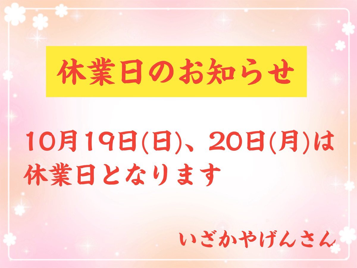 2025.10.15(水) 来週19日(日)と20日(月)は休業日となります 北区滝野川6-40-8 #いざかやげんさん #居酒屋 #滝野川 #板橋駅 #新板橋駅 #西巣鴨駅 #御代の台仲通り商店街 #喫煙可能店 pic.x.com/OR2kfCi8oH