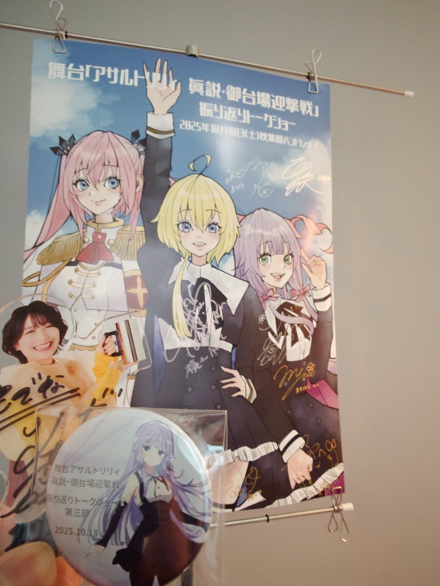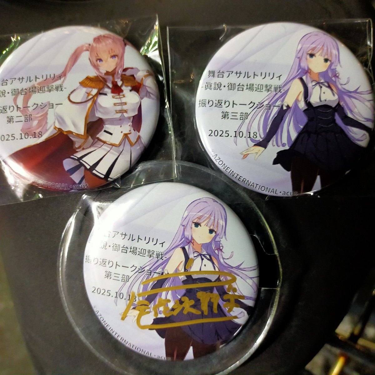 #迎撃戦振り返りトークショー 2部、3部 ありがとうございました✨当たり前だけど、稽古の様子とか裏話とか沢山聞けて、完成までの苦労が凄く伝わってきた✨尾花沢先生サインの缶バッジも抽選で当たって感無量です😭 #舞台アサルトリリィ #御台場迎撃戦 #アサルトリリィ pic.x.com/v7einATYuQ
