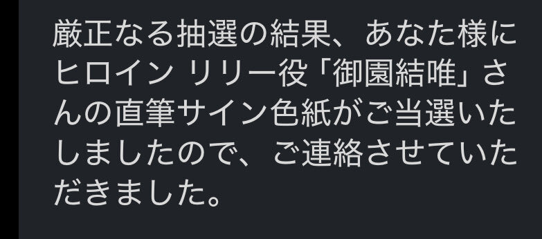 と、いうことで。 キスリムの予約開始キャンペーン、御園さんの直筆サイン色紙当選しておりました。 今まで御園さんのこういうキャンペーンいろいろあったけど、当選したのは初めて(アマギフは除く)でほんと嬉しいです。ありがとうございます。 とりあえず額縁買います。 #キスリム #御園結唯 pic.x.com/gP1KDmDOIt x.com/entergram_info…