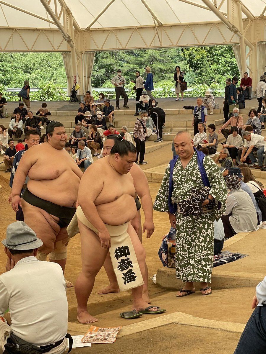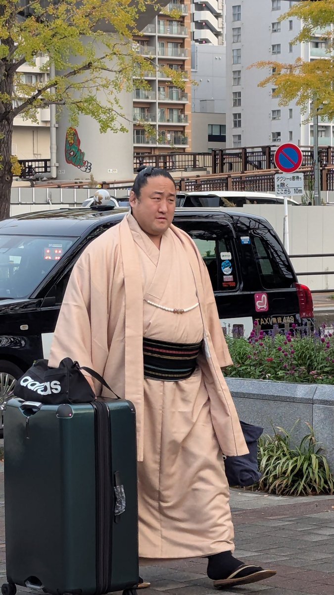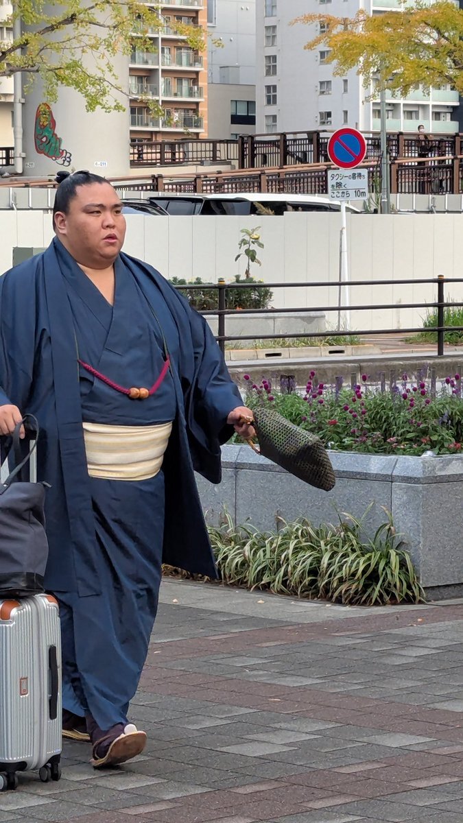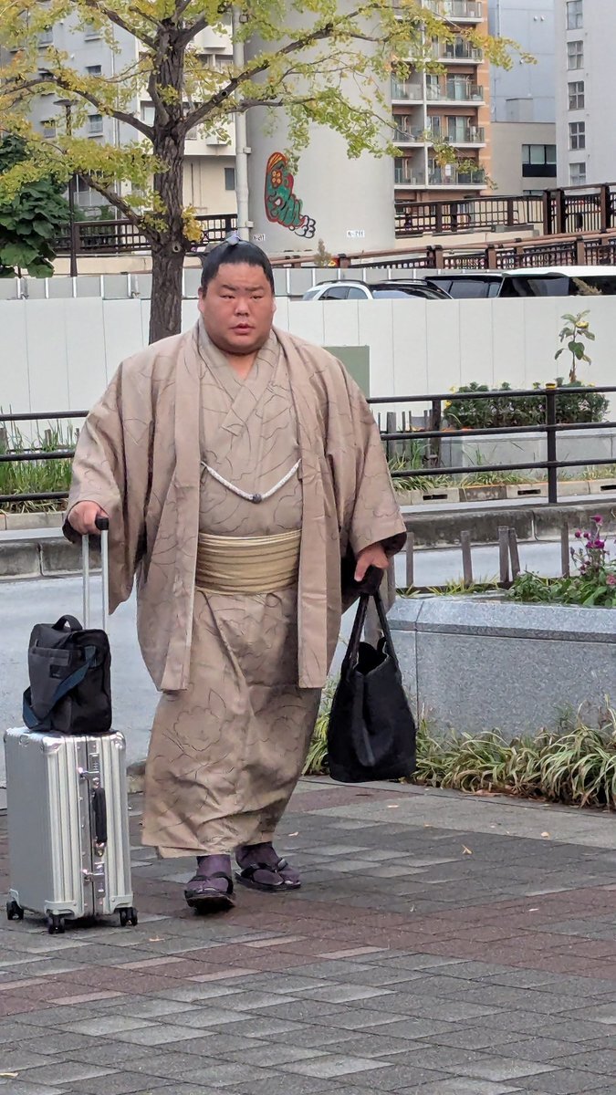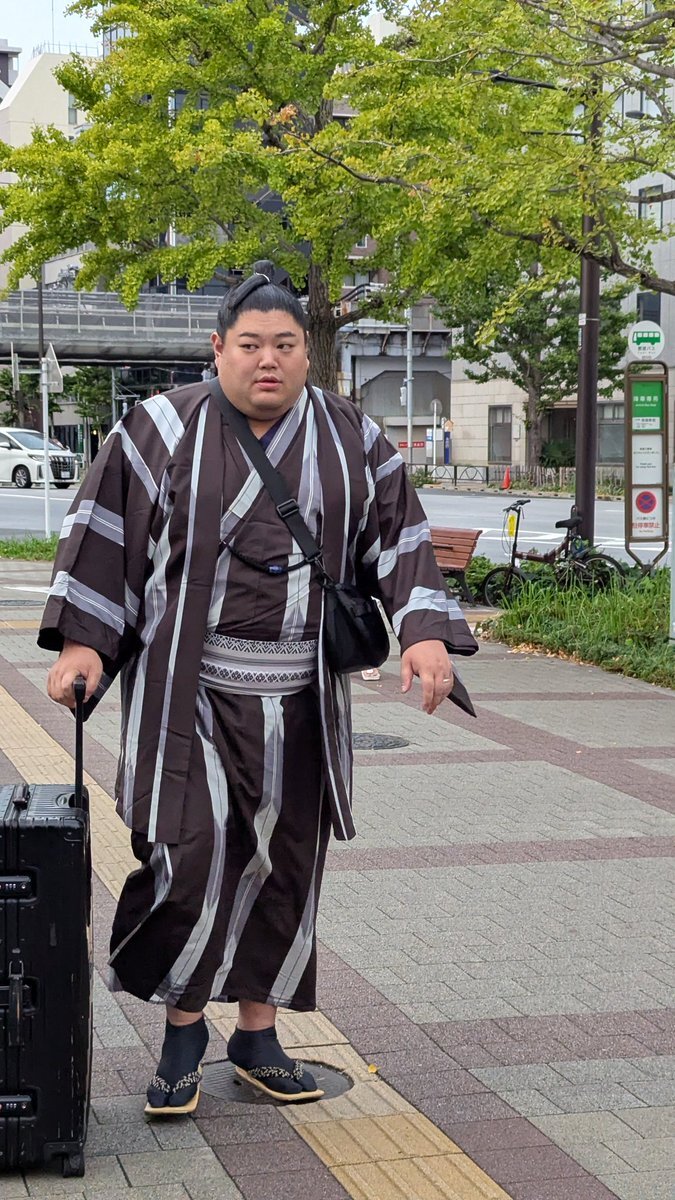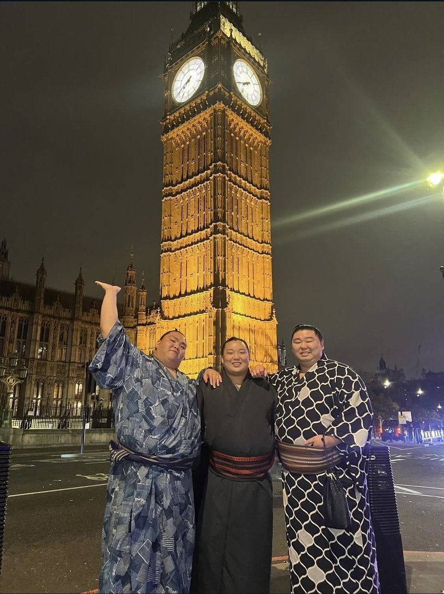 スポーツ報知さんありがとうございますm(_ _)m み~たん♥がいたいた🤭 携帯は首から下げることにしたんだね😄取られたらダメだからね👍 #御嶽海 #ロンドン巡業 pic.x.com/LXTRremmsF