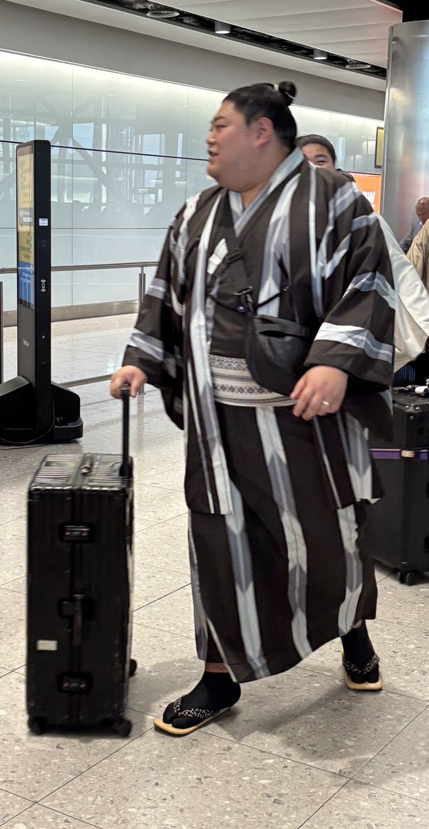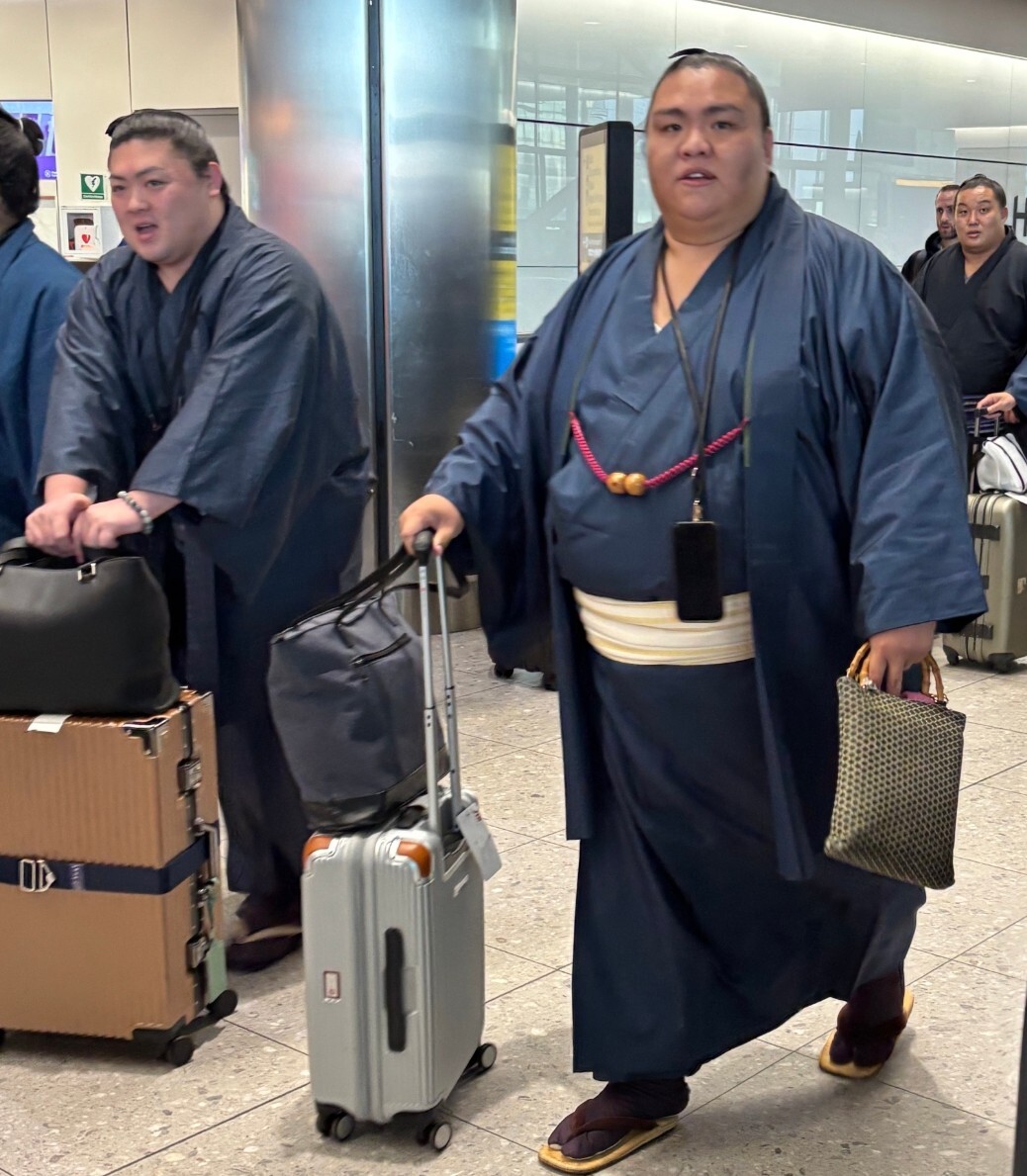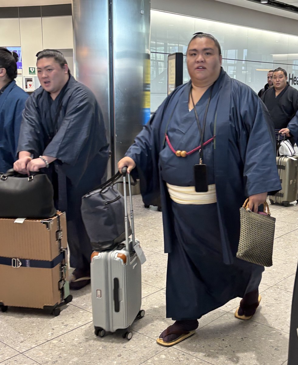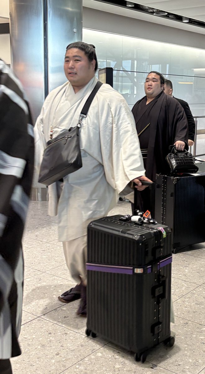 ロンドン・ヒースロー空港に到着した第2陣の力士たち② #阿炎 #若元春 #欧勝馬 #御嶽海 #sumo #相撲 #大相撲 #ロンドン公演 #London #RoyalAlbertHal #スポーツ報知 pic.x.com/DvGzlkQsjT x.com/hochi_sumo/sta…