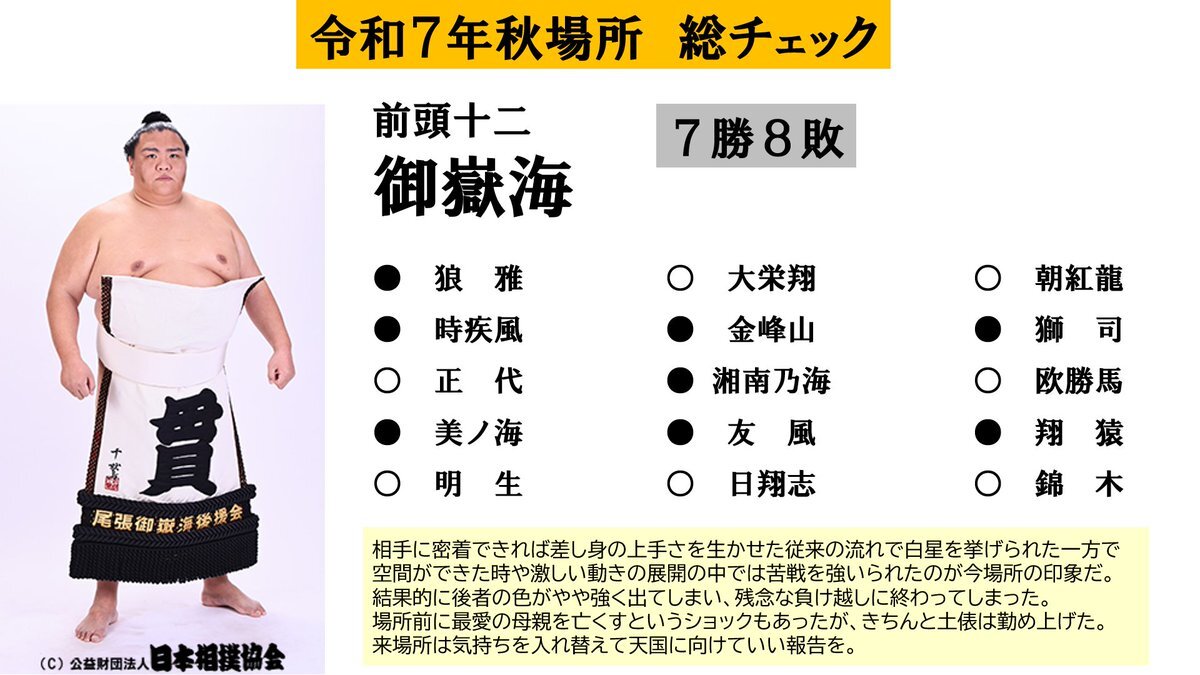 #御嶽海 負け越したとはいえ、心の強さを見せてもらいました。 少し休んでください。 #これだから御嶽海はやめられない! x.com/taroh_agematsu…