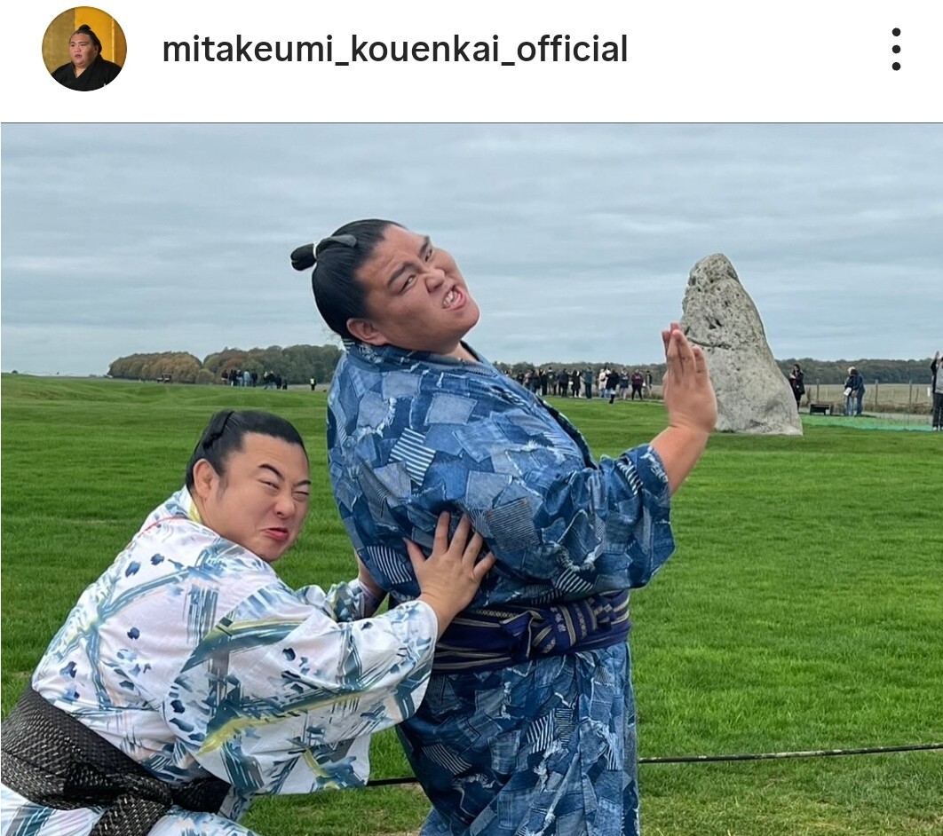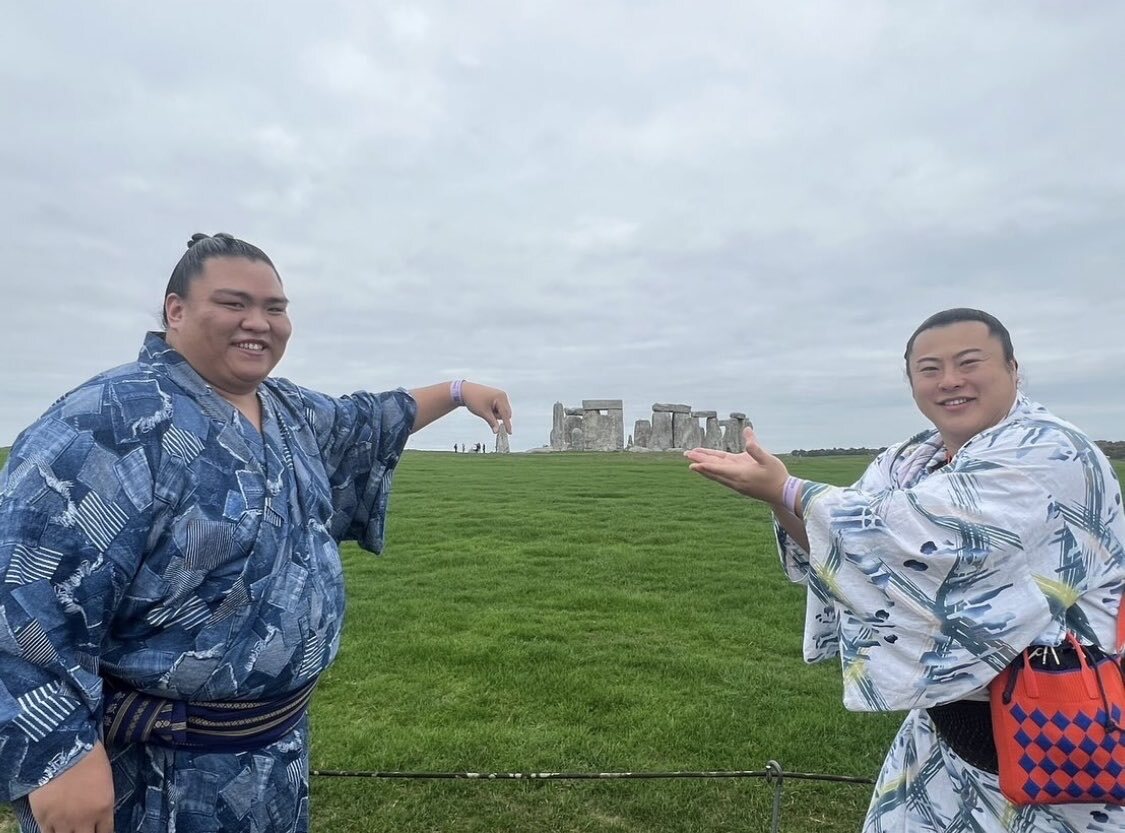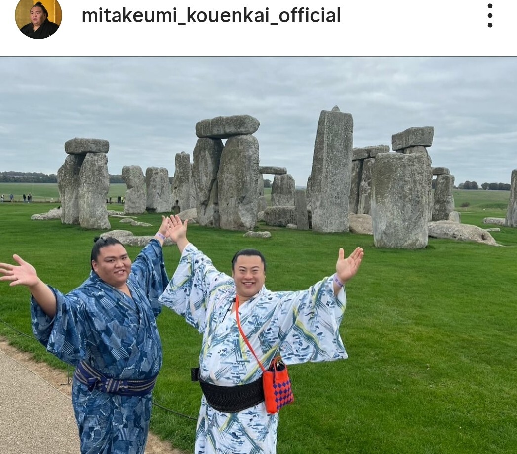 大相撲ロンドン公演、御嶽海は大英自然史博物館を見学。後援会のインスタにメガテリウムの化石と一緒に写っている写真がある。ストーンヘンジにも行った模様。 #sumo #御嶽海 instagram.com/p/DP449E_EmJu/…