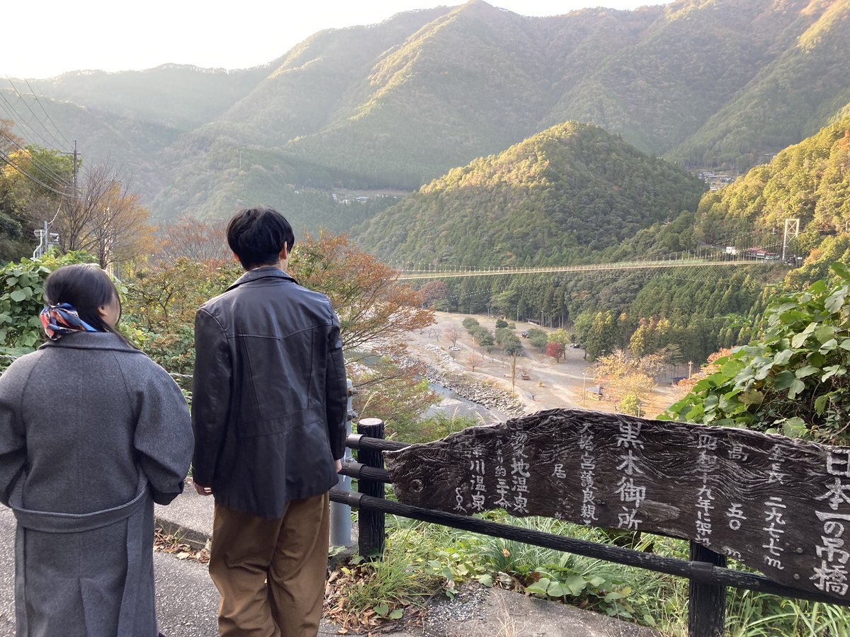 おおっとぉ まさかの息カノ合流❗️ こうなると、観光行くかね 紅葉🍁して来た十津川へ 2年ぶり、#谷瀬の吊橋 はしゃいで橋を揺らすように歩いていたら後ろのオヤジに怒られました(^◇^;) オヤジでチキンとか草🌱 くんなや😬 その後、🈂️室温復活らしき我がエース🈂️♨️へ 親子🈂️活だ #御所宝湯♨️ pic.x.com/hFpyXCFxXO