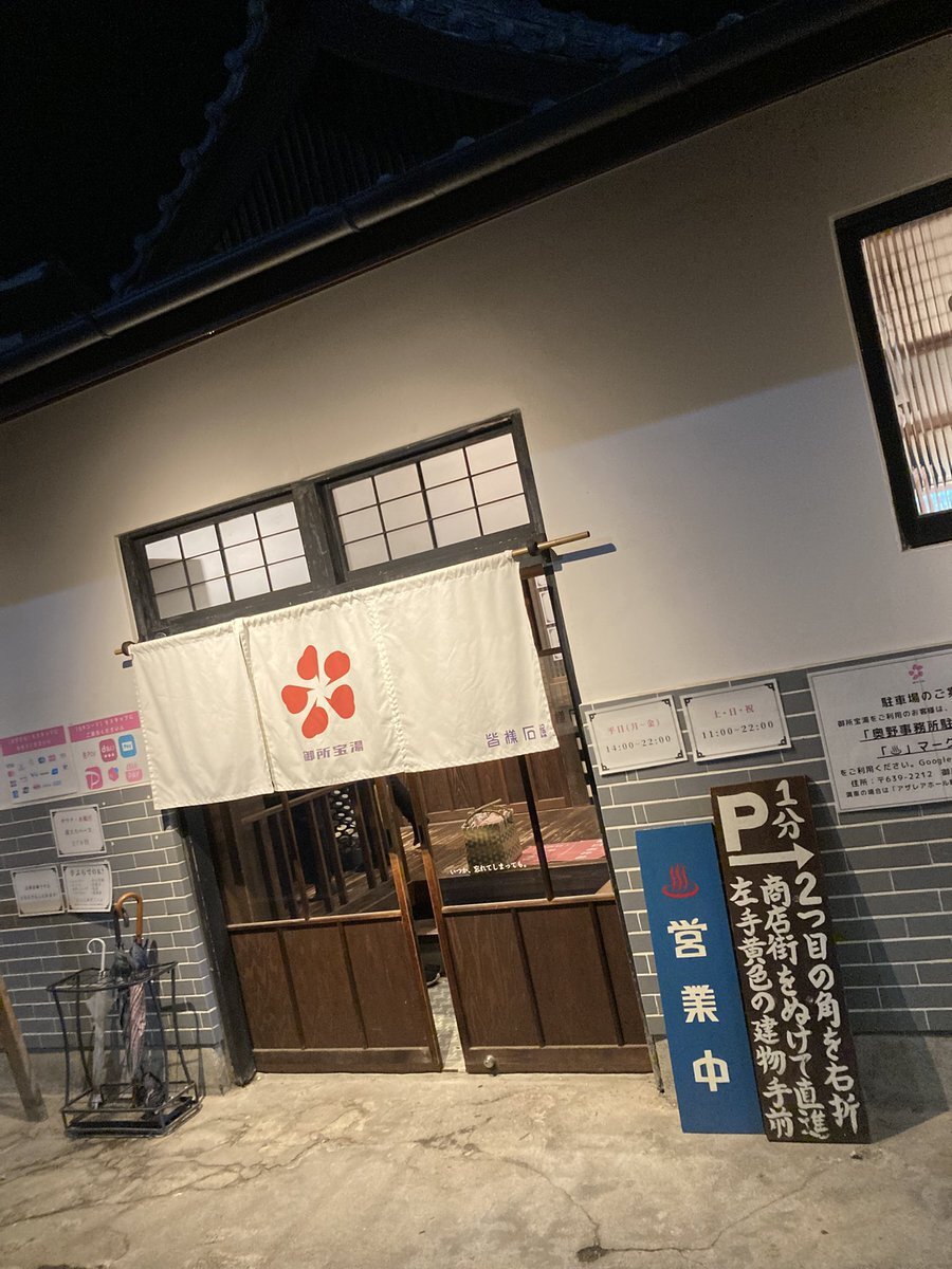 【御所宝湯(奈良県御所市)】 こちらの銭湯•サウナへ🚙💨 御所には初めて訪問しましたが、夜だったけど良き街並み✨️ 古き良き銭湯で、サウナも温度湿度共に良くセルフロウリュが出来、かまくらの様な独特な作りで水風呂への動線も最高👍 バキバキにととのいました😊 #御所宝湯 #銭湯サウナ #奈良 pic.x.com/uMSLiJzNN0