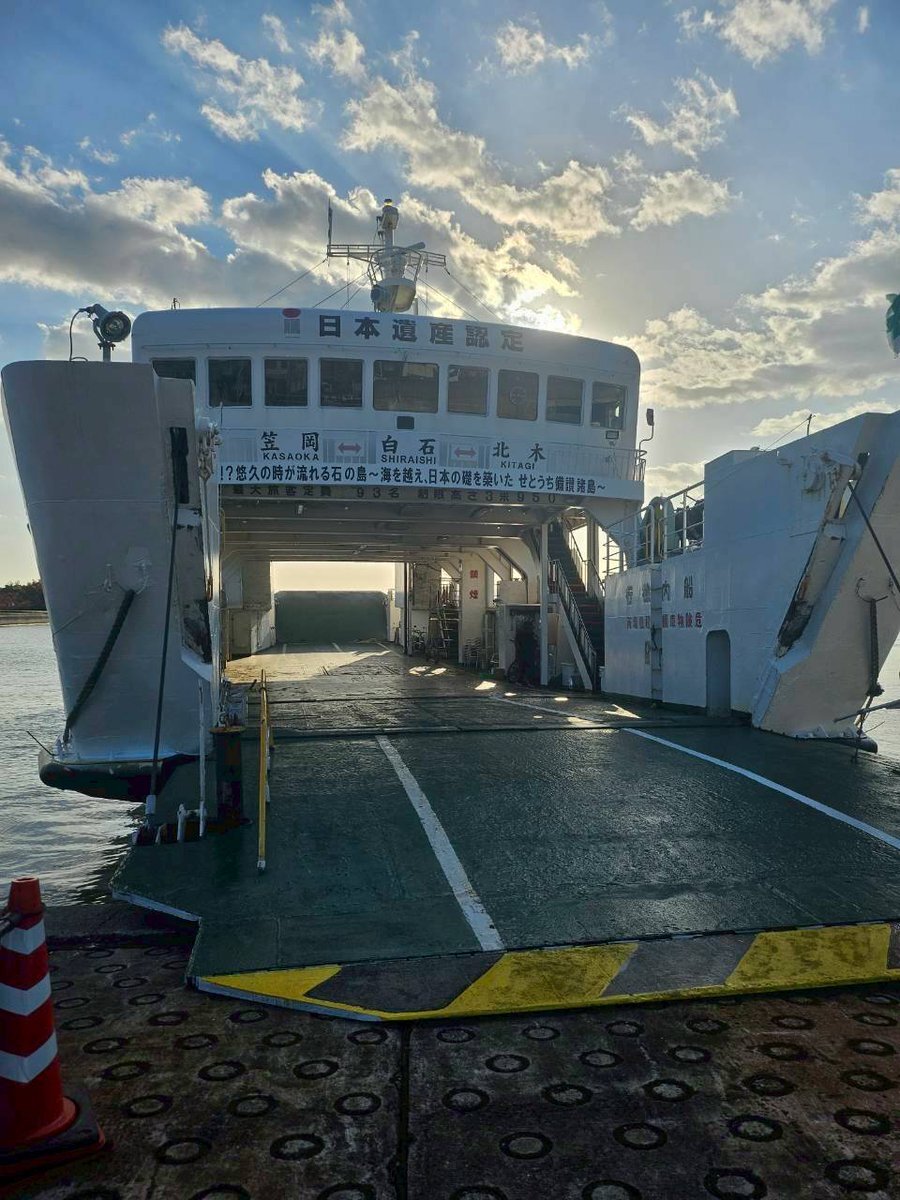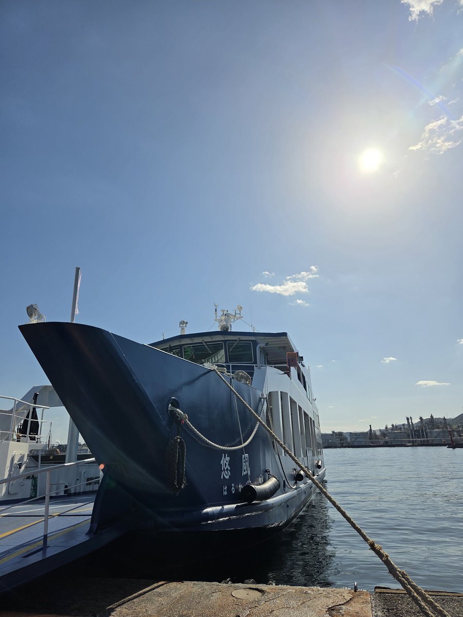 秋晴れの #金風呂丸 です 朝晩は寒くなりつつありますが 日中はまだまだ日差しが強いです #ドック から帰ってきたてホヤホヤ 元気に頑張ってますので ゆっくり遊びに来てくださいね #劇場版トリリオンゲームロケ地 #北木島 #白石島 #御船印 #ハローキティコラボ pic.x.com/0F8aevlR8M