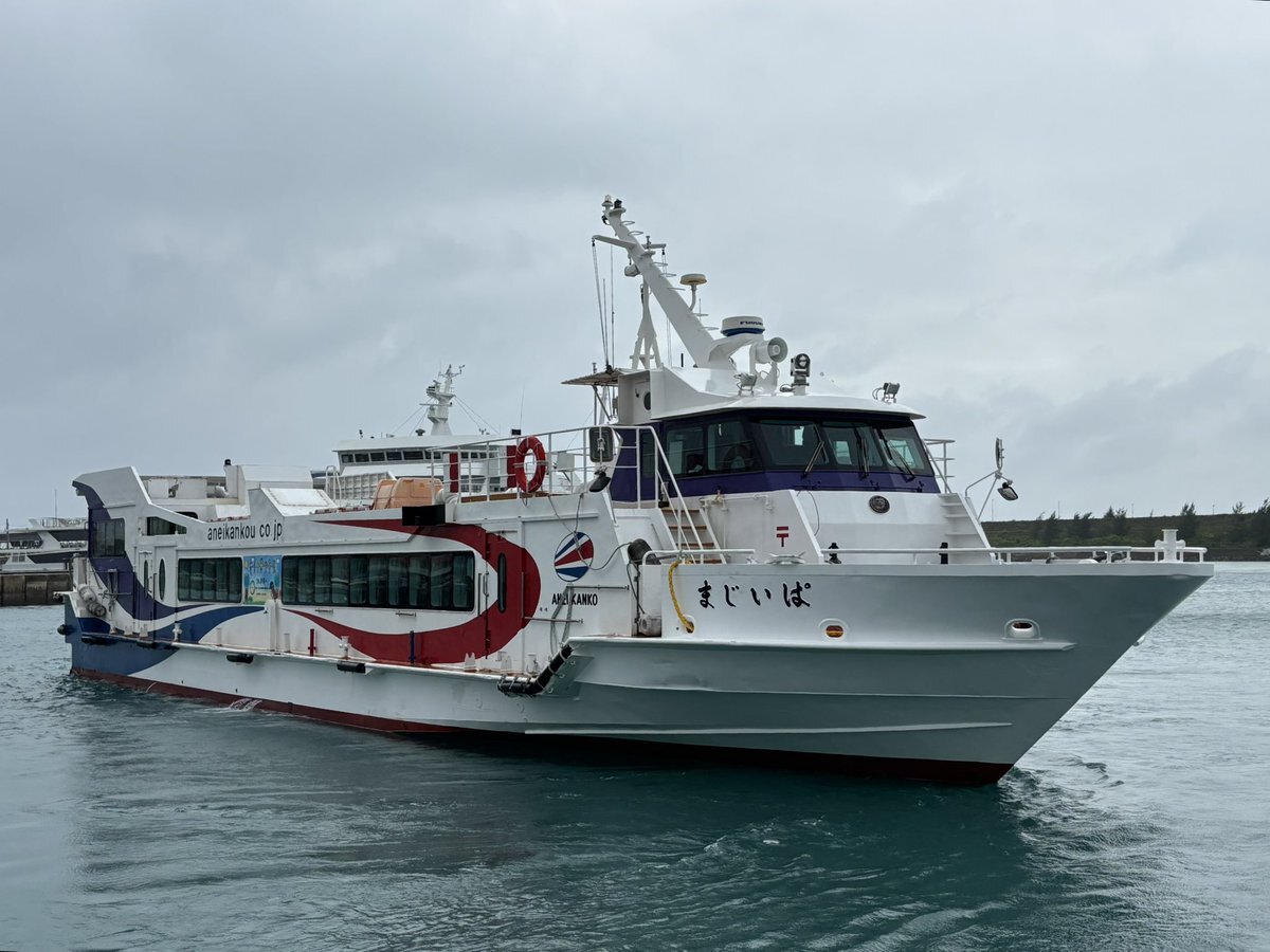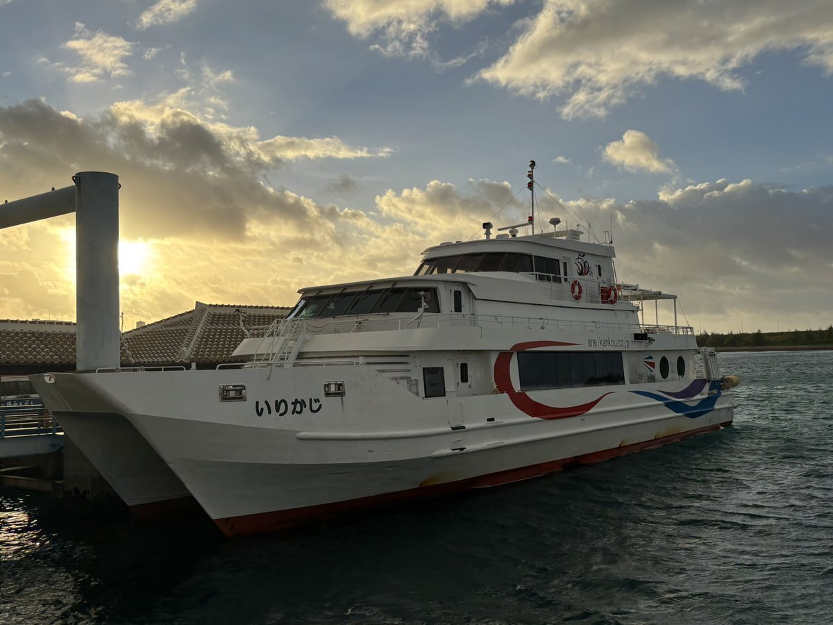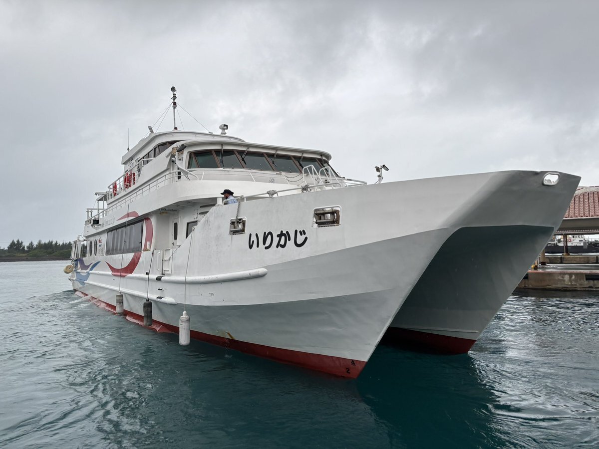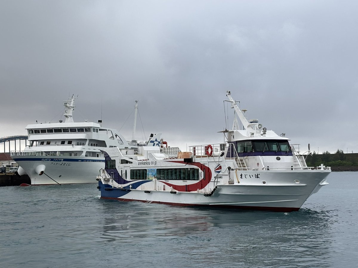 おはようございます☔️ 上原行き「いりかじ」⬅️御船印 大原行き「ぱいじま」feat.フェリーよなくに 今日は南風のため約3週間ぶりに上原・鳩間航路が運航しています⛴️ 明日は台風が接近するため欠航便が出る可能性が高いので注意してください⚠️ #安栄観光 #御船印 pic.x.com/tZsHHcmP7B