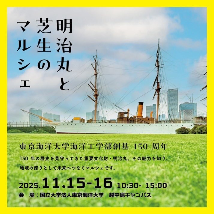 [イベントのお知らせ] 11/15(土)16(日)、隅田川マルシェ様主催の『明治丸と芝生のマルシェ』開催に伴い、明治丸海事ミュージアム開館日となりました! ぜひこの機会に越中島キャンパスにお越しください♪ #御船印 #明治丸 x.com/tumsatmeijimar…