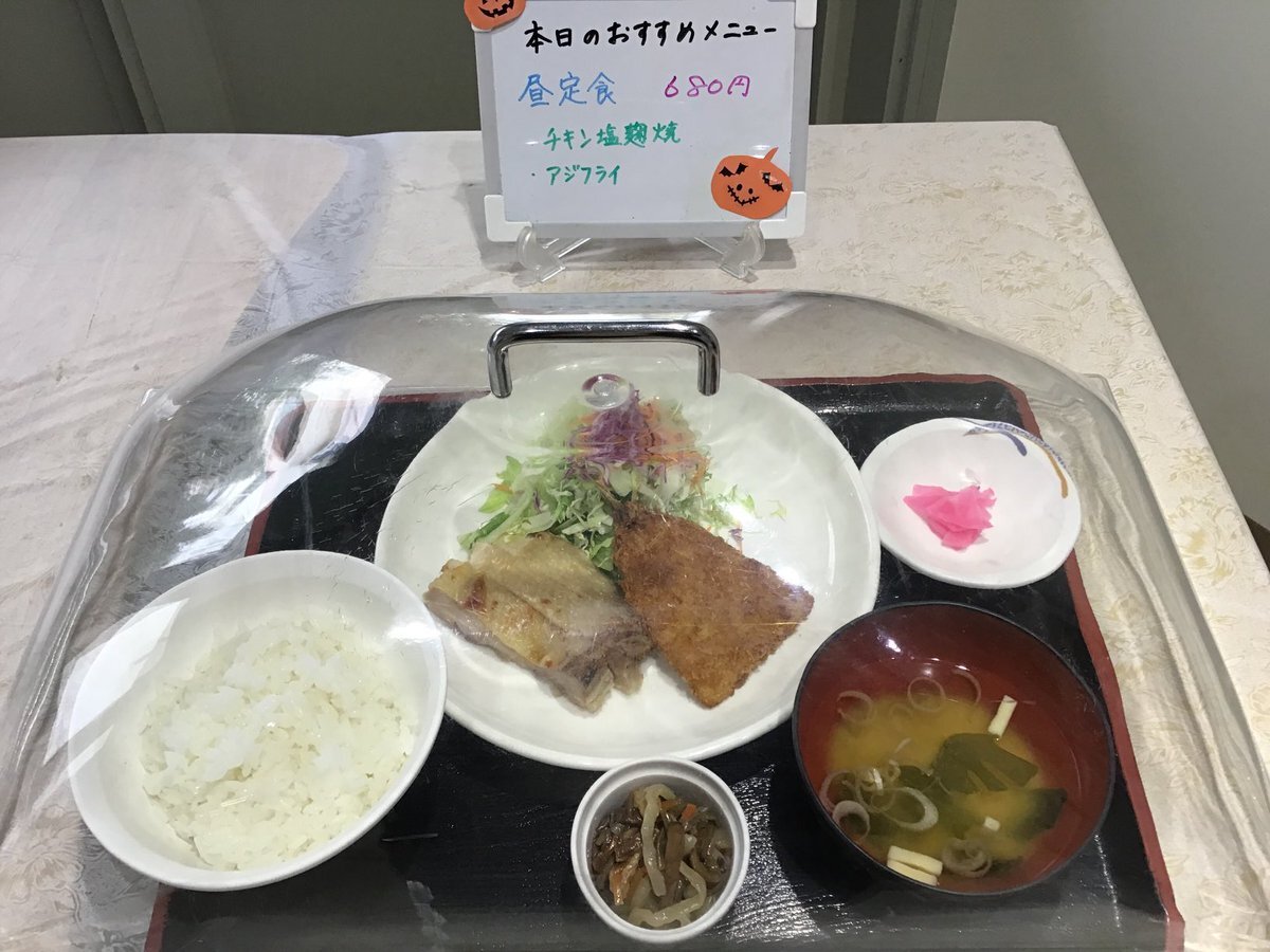 #20251019 #院内パトロール きょうは、近所の #総合病院 にやって来ました 暇つぶしに、パトロールに出ました #御食事処 #健やか #本日のおすすめメニュー #昼定食 #680円 #チキン塩麹焼 #アジフライ タンパク質重視の素敵な組み合わせ、健康的で美味しそうですね! pic.x.com/besxobzrkm
