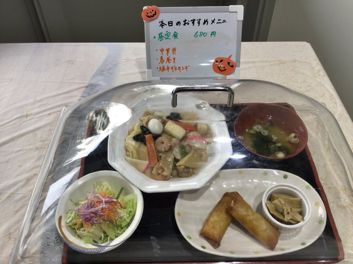 #20251028 #院内パトロール きょうは、近所の #総合病院 にやって来ました 暇つぶしに、パトロールに出ました #御食事処 #健やか #本日のおすすめメニュー #昼定食 #680円 #中華丼 #春巻き #塩ネギエリンギ 素敵な組み合わせ、健康的で美味しそうですね pic.x.com/ifiVBPnckH