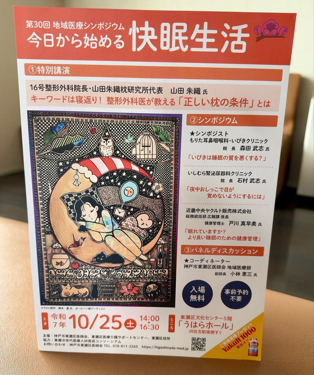 土曜日の朝...🙂 本日、開催... 東灘区地域医療シンポジウム 「今日から始める 快眠生活」 時間:14:00〜16:30 東灘区文化センター「うはらホール」 ご参加をお待ちしております...🤓 #神戸市 #東灘区 #御影 #循環器内科 #心筋梗塞 #高血圧 #弁膜症 #不整脈 #心房細動 #田中内科循環器内科クリニック pic.x.com/Ljvhg1eMYd