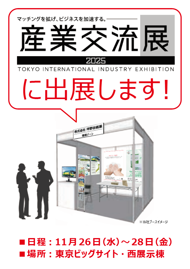 持続可能な未来を支える紙製品とリサイクル技術を携え、産業交流展2025(東京ビッグサイト)出展します11月26日(水)~28日(金)紙の可能性を広げる新たな取り組みをぜひご体感ください。 #産業交流展2025 #坪野谷紙業 #環境ゾーン #SDGs #循環型社会 #リサイクル #東京ビッグサイト #紙の未来 pic.x.com/BQ3PnZengh