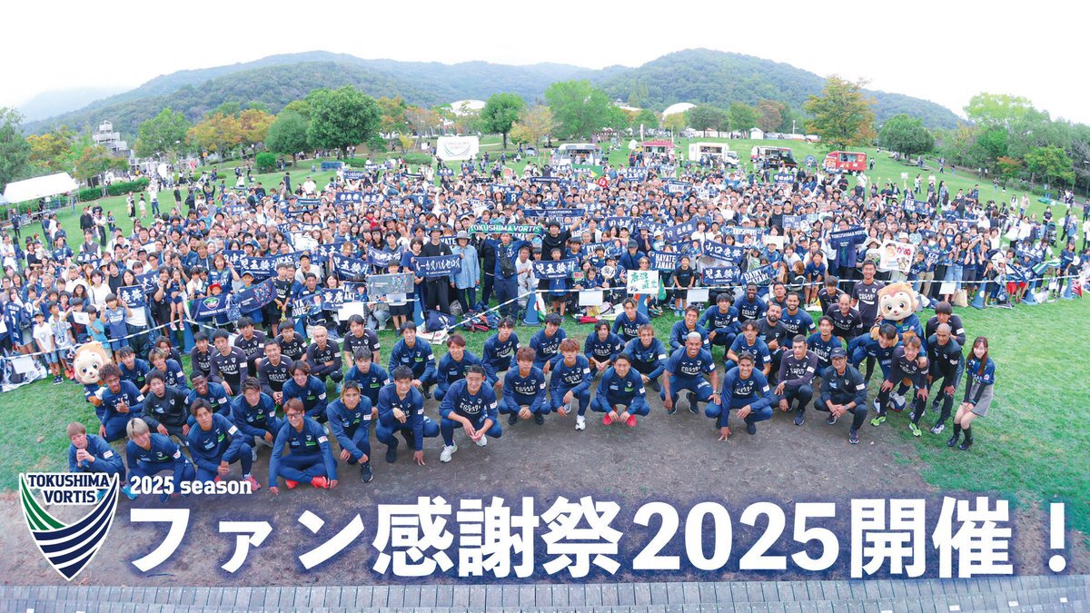 【10/12(日)ファン感謝祭】 ファン感謝祭の締めくくりは記念写真📸✨ 皆さんの笑顔や声援が、大きな力になりました💙 #岩尾憲 選手のあいさつにもありましたが、 ここで得たパワーをピッチへ。 リーグ戦残り6試合、最後まで共に戦いましょう🔥 #vortis #徳島ヴォルティス #徳島とともに最高の瞬間を pic.x.com/bW1d6Qlh7Z
