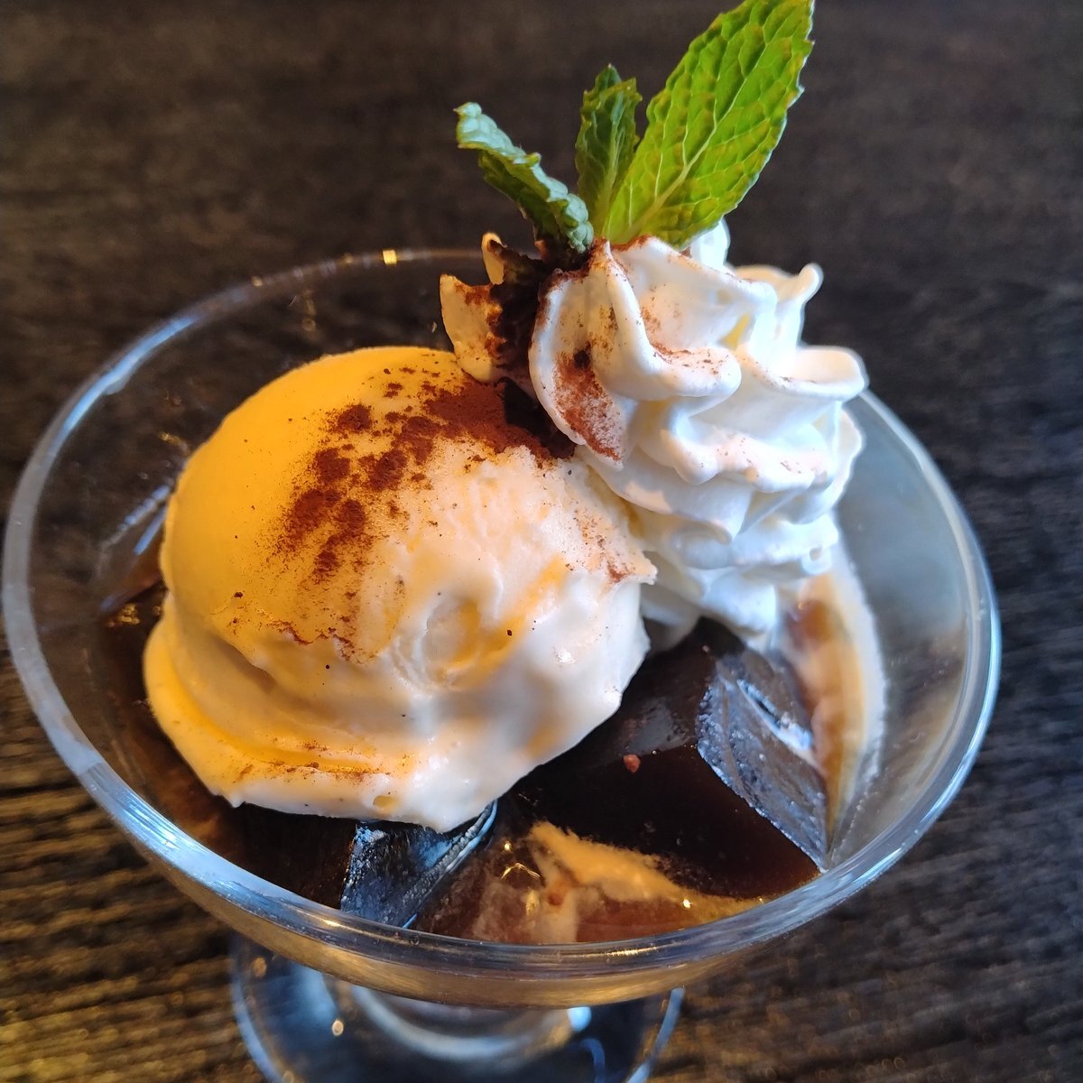 ちょこっとデザート ☕コーヒーゼリー🍨 大人な苦味と甘さのコラボがたまらない! “ちょこっと”がちょうどいいのに、もう一つ食べたくなるんです😄 #徳樹庵 #デザート pic.x.com/y3P8rjwPat