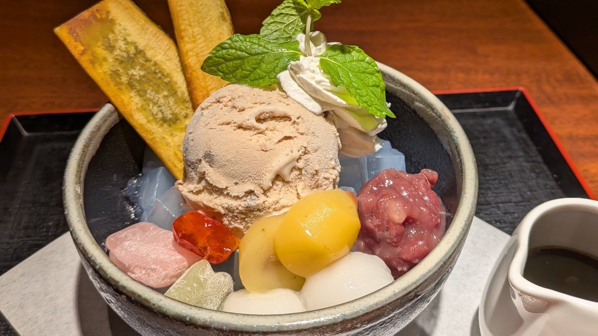 秋だけの特別素材を使った🌰渋皮栗アイスの秋色あんみつ🍨黒蜜をとろりとかければ、ほろ甘く香ばしい秋の味わい。さつま芋チップを添えて🍠ほっと一息どうぞ🍂 #徳樹庵 #秋のデザート pic.x.com/8cHZrjsmEs