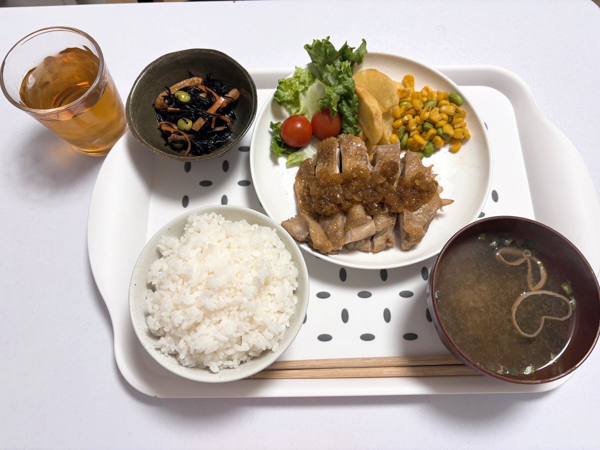 今日の夕食 ・チキンソテー(玉ねぎソース) ・フライドポテト&枝豆コーン ・ひじき煮 #今日の夕食 #忍たま乱太郎の食堂おばちゃん pic.x.com/Fdp5AVTA7M