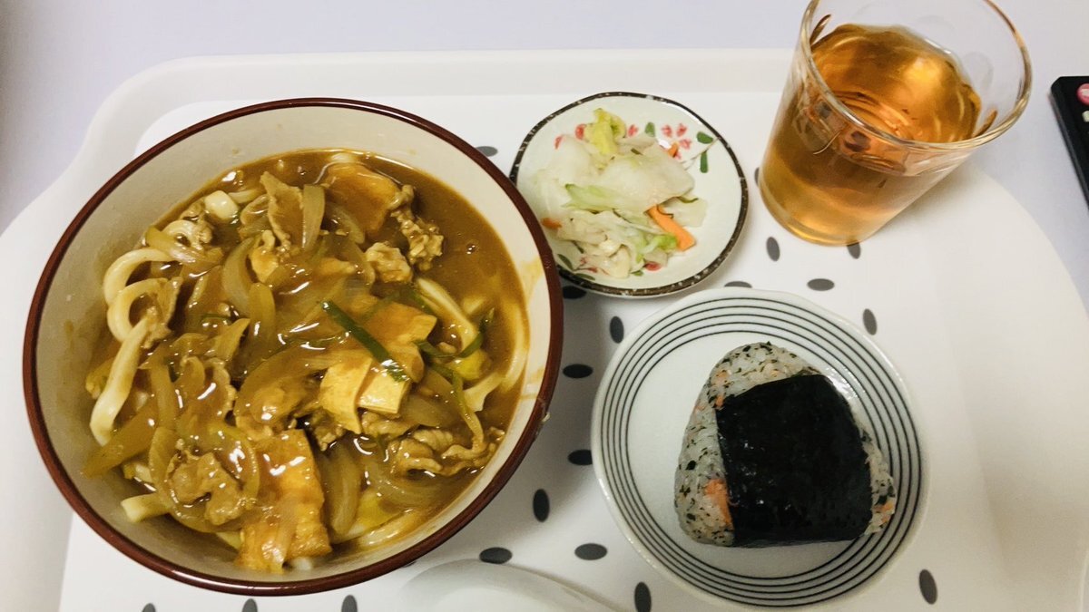 今日の夕食 ・カレーうどん ・鮭ワカメおにぎり ・漬物 #今日の夕食 #忍たま乱太郎の食堂おばちゃん pic.x.com/697ip8WgyL