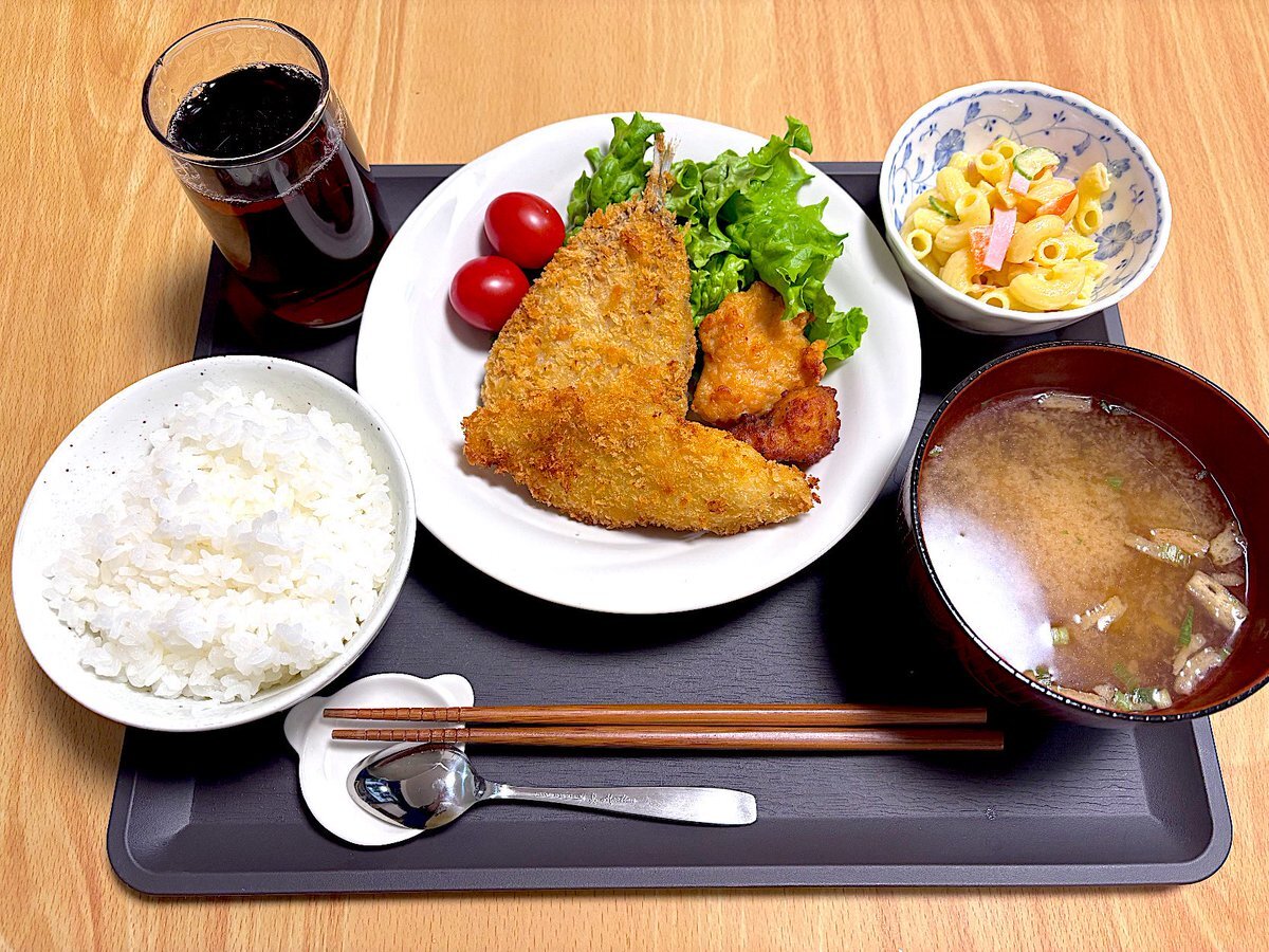 今日の夕食 ・ミックスフライ(アジフライ・白身魚フライ・唐揚げ ・マカロニサラダ #今日の夕食 #忍たま乱太郎の食堂おばちゃん pic.x.com/wncwggrQry
