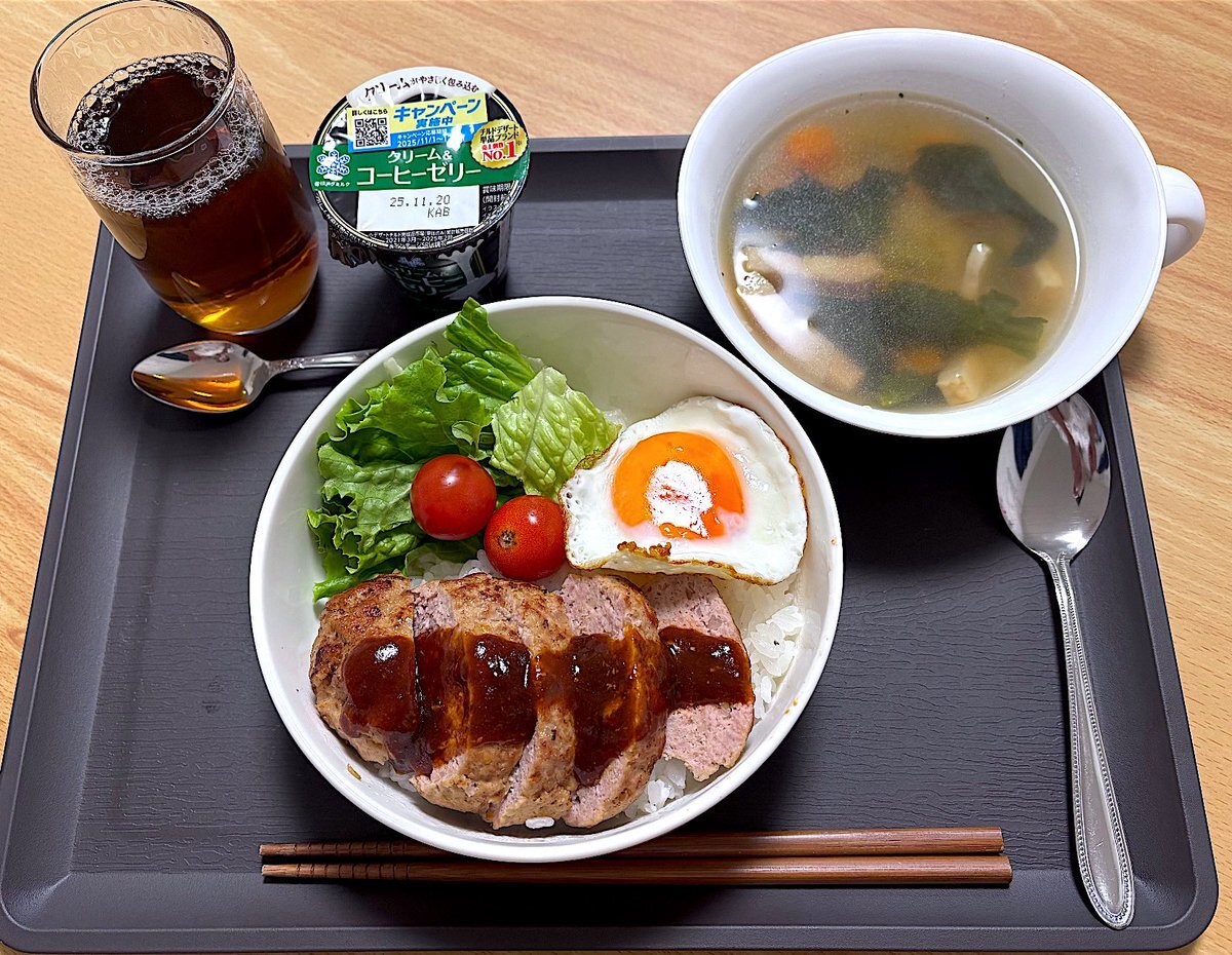 今日の夕食 ・ロコモコ丼 ・コンソメスープ ・コーヒーゼリー #今日の夕食 #忍たま乱太郎の食堂おばちゃん pic.x.com/I2EqtLkbLm