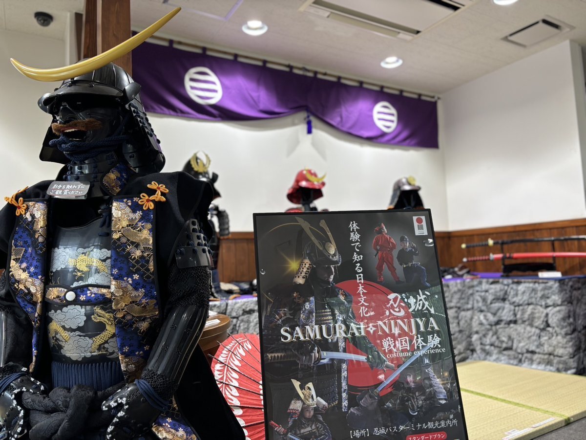 11/9(日)は、#忍城時代まつり🏯 #忍城バスターミナル観光案内所 では特別に10分1,000円でお手軽 #甲冑体験 ができちゃいます♪ 戦国気分でまつりを満喫しよう✨ もちろん #手裏剣投げ体験#忍者体験 もありますよ🥷 #行田市 #忍城 #戦国体験 pic.x.com/zVo2i4SPn7 x.com/Gyoda_PR/statu…