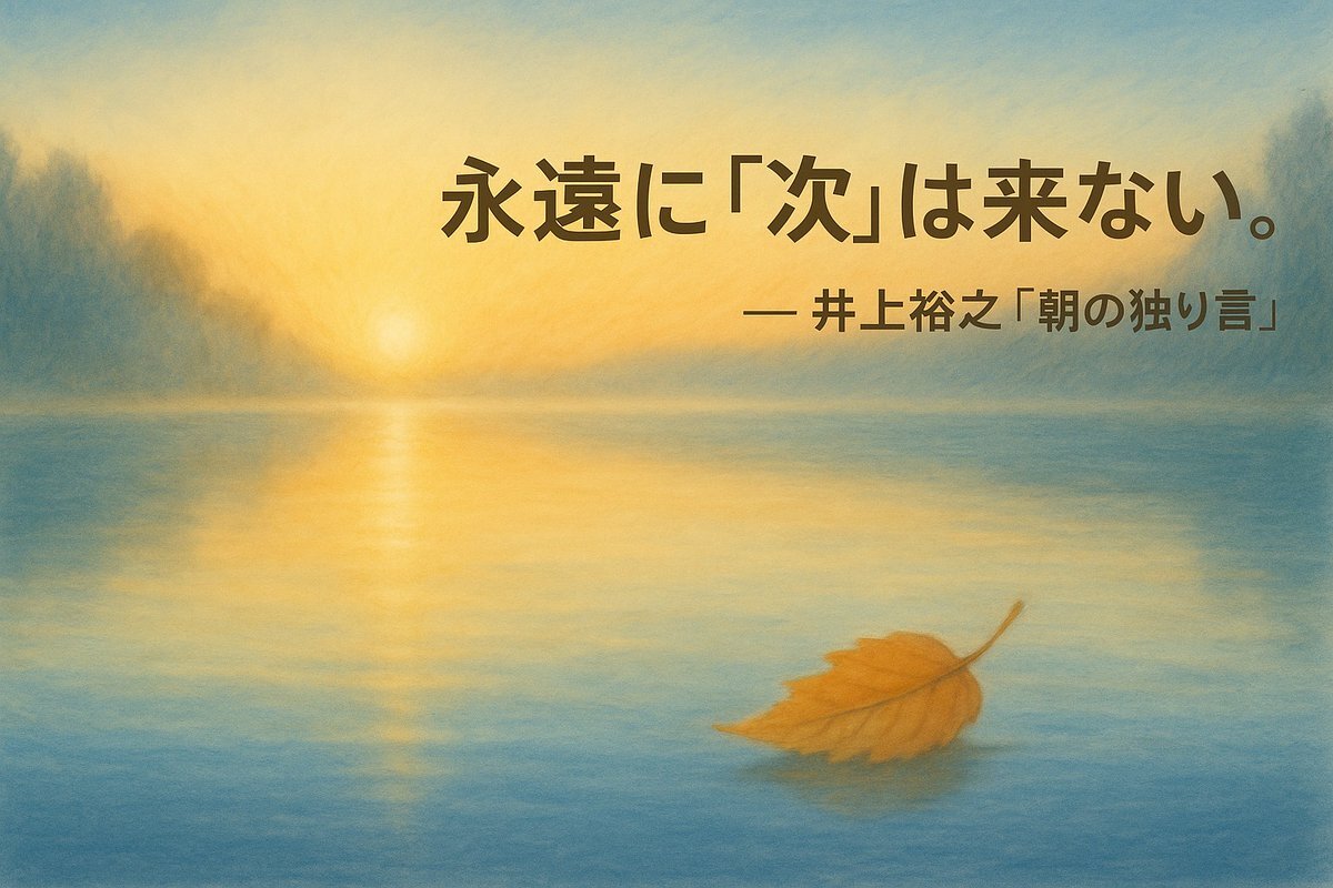 おはようございます☀️ 今日のテーマは「“今”を生きる選択」。 井上裕之先生の言葉── 「永遠に『次』は来ない。」 “いつかやろう”と思っていたことを、 “今やる”に変える日。 その一歩が未来を変えます🌱 #今を生きる #井上裕之 #志を生きる #生成AI pic.x.com/aCaSzH3VJD