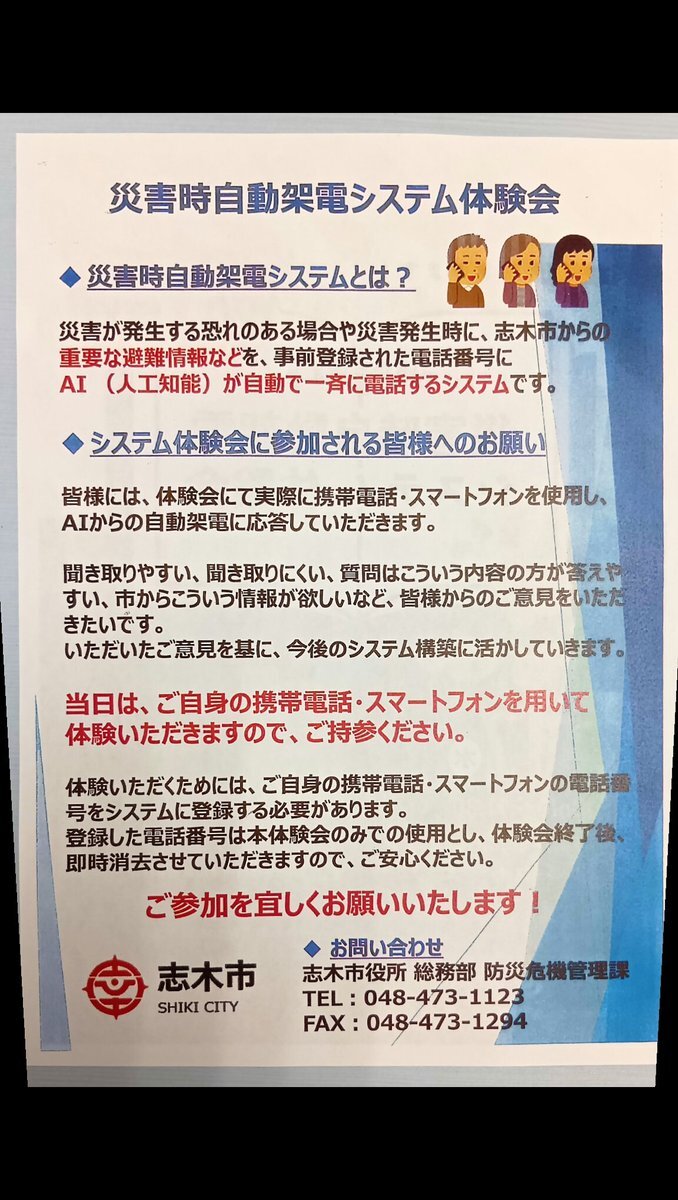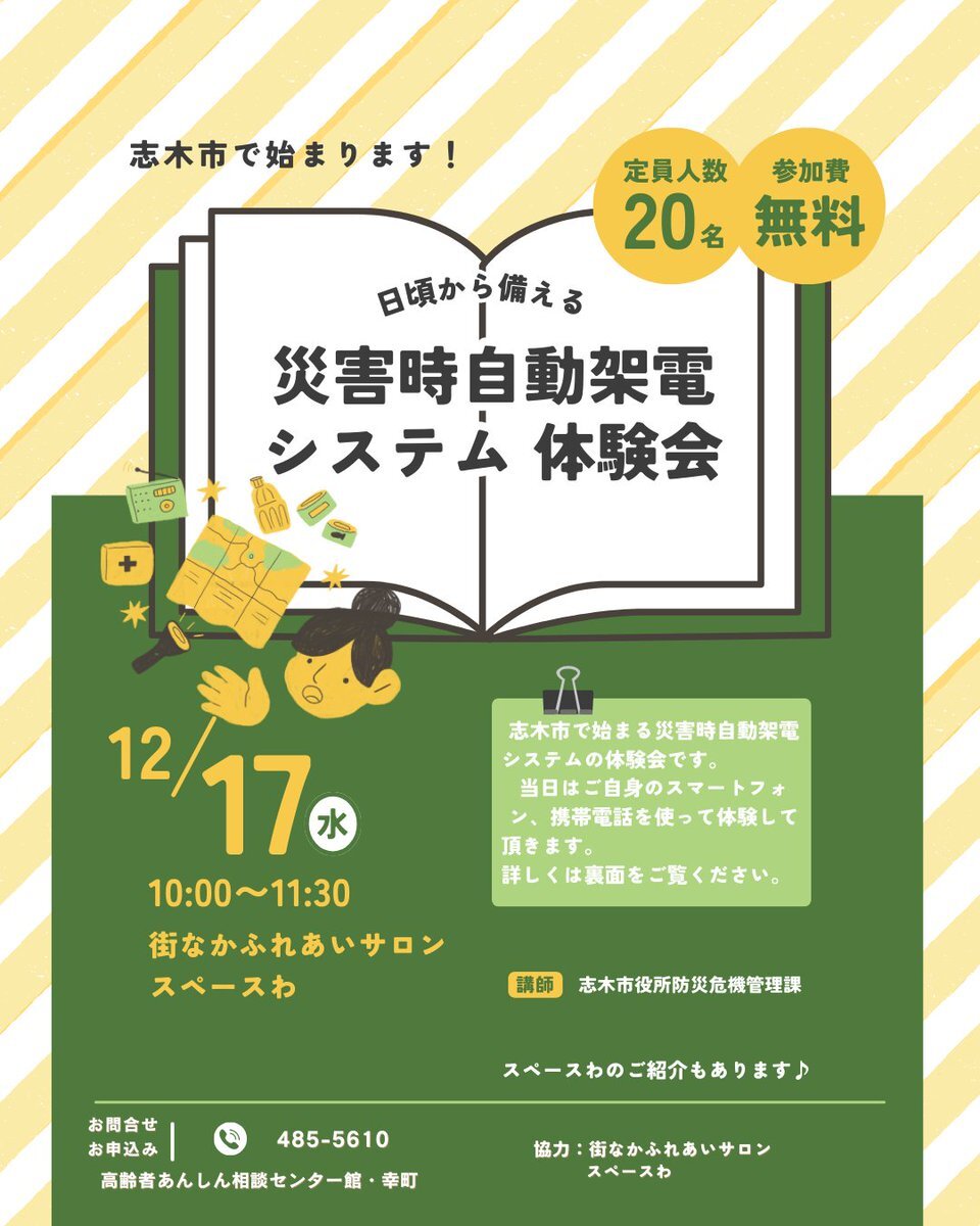 高齢者あんしん相談センター館・幸町です。 12/17(水)10:00〜11:30 館地区の街なかふれあいサロン スペースわで、志木市で始まる災害時自動架電システム体験会を行います。 スペースわのご紹介もあります! #志木市 #街なかふれあいサロン #地域包括支援センター #日頃から備える #志木市社協 pic.x.com/unEM5U5u1R