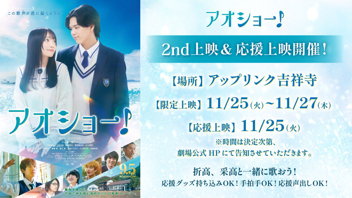 映画『#アオショー!』🌊 ˗ˋˏ🎊セカンド上映&応援上映開催決定🎊ˎˊ˗ 🎦 #アップリンク吉祥寺 @uplink_joji 上映期間:11/25(火)~11/27(木) 応援上映日:11/25(火) 応援上映が帰ってくる✨ みんなで青春合唱をもう一度🎵 aosho-movie.jp/news/20251110/… #RAN #MAZZEL #山川ひろみ #小山慶一郎 #応援上映 pic.x.com/XFdsZYyliY