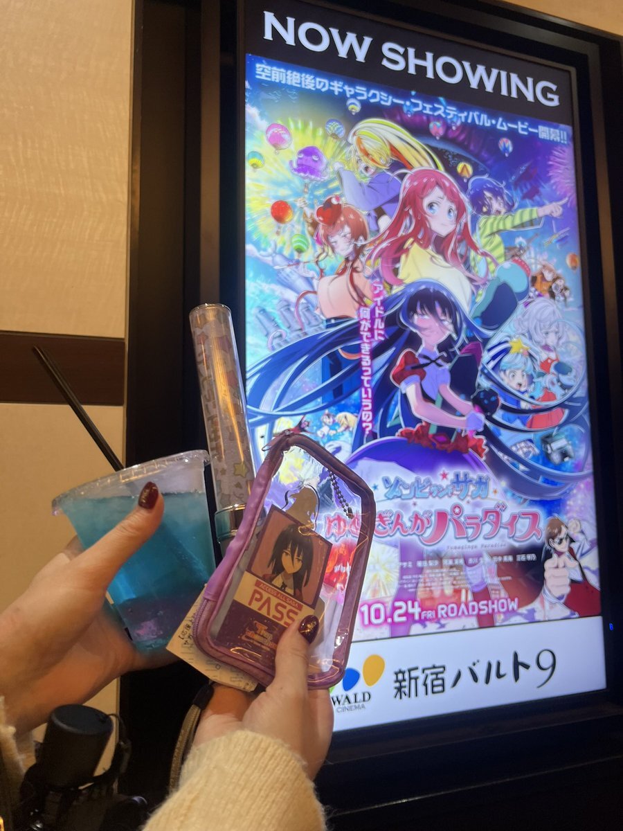 新宿バルト9の応援上映行って来たんじゃい! B列真ん中で、かぬかさんとせつじさんが間近に見れてよかったい! 初めての応援上映だったけど面白かった!合いの手、ツッコミ、みんな良かった! ※写真の怪しい人物については触れないでおこう(笑) #ゾンビランドサガ #ゆめぎんがパラダイス #応援上映 pic.x.com/dhVRC3CKJl