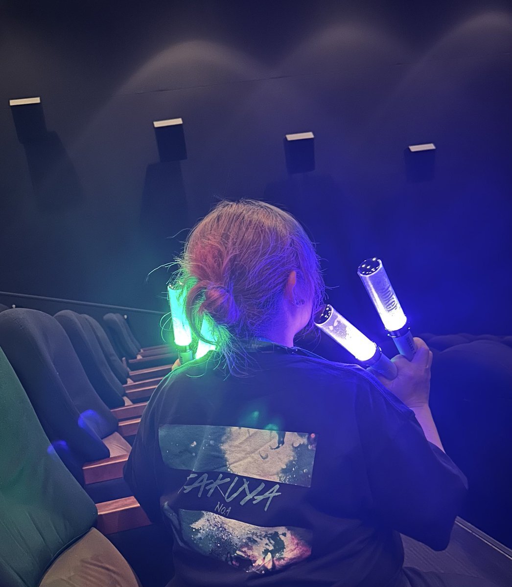 イオンシネマ佐賀大和で連チャンの応援上映参戦👍109から結構時間が無くバタバタ😅 またも、最前列ど真ん中😆 2回ともそうですが、ライブシーンは迫力満点😲 『手を銀河に伸ばそう』合唱シーンは震えました🥹 まさか2回とも涙するなんて😭 #ゾンビランドサガゆめぎんがパラダイス #応援上映
