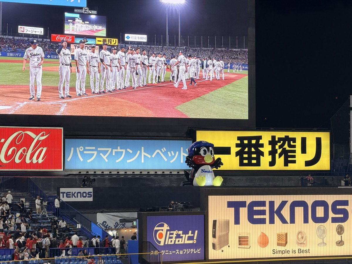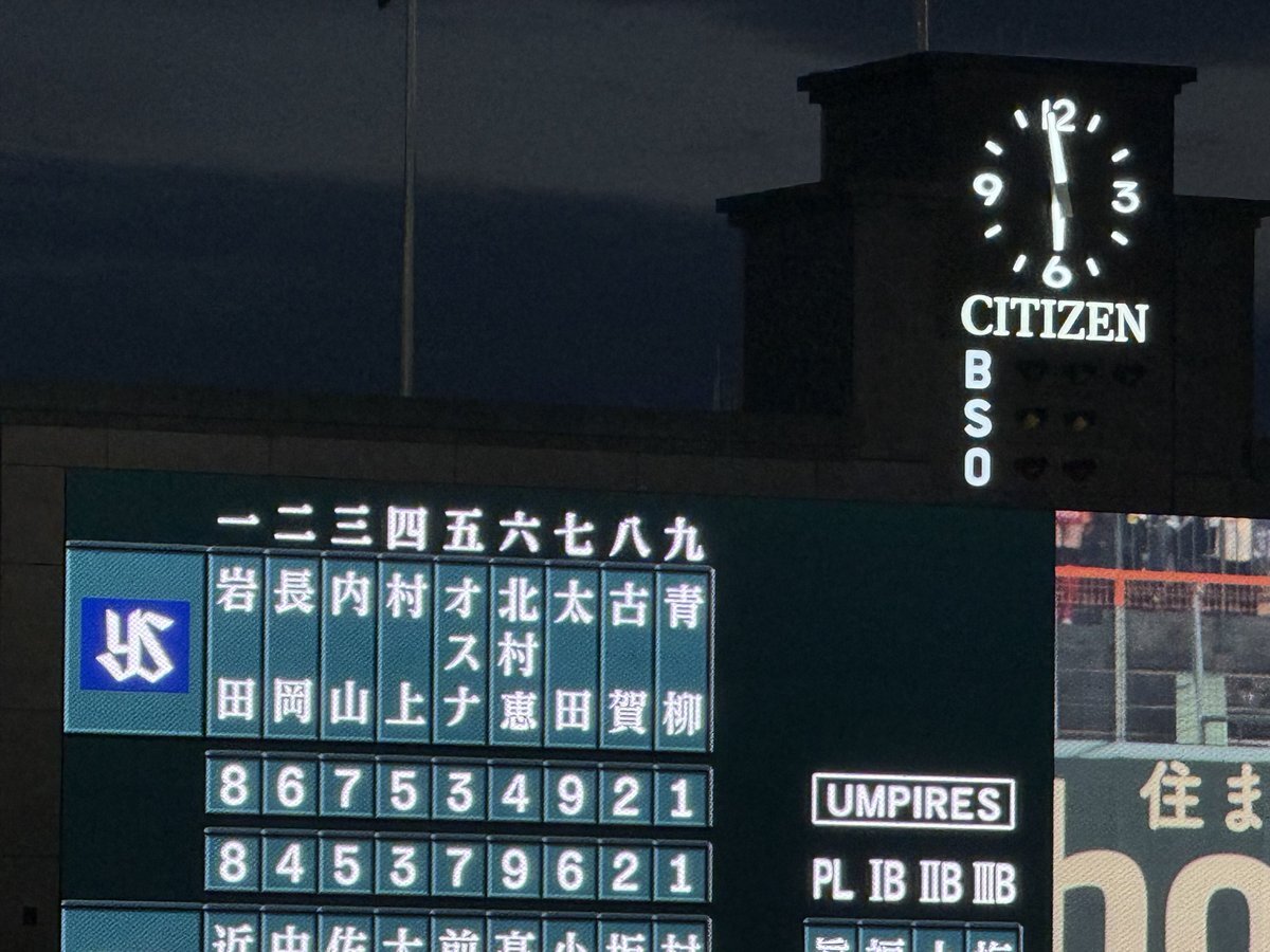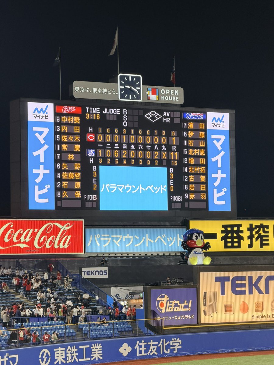 神宮最終観戦⚾️ 11-1の大勝利すわほー⛱️ 神宮現地観戦10勝3敗1分となりました★ 村神様代打で出てきました❗️神宮で観れるの最後かな❓ #応燕 #神宮球場 pic.x.com/PcNNlnMxY4