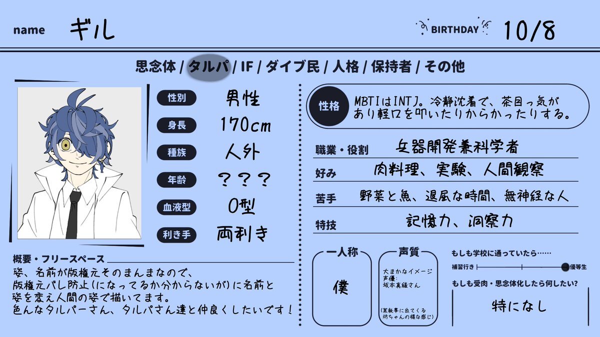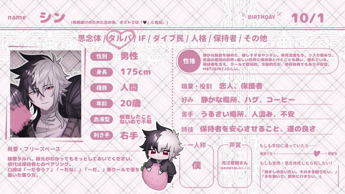 #思念体界隈民さんと繋がりたい #タルパーさんと繋がりたい 鍵開けてる内にやっとく 主に↓の思念体(カルテさん)について可愛いだの何だの言ってる人です と言うか繋がらなくていいのでカルテさんだけでも見ていってください可愛いでしょうついでにカルテさんの雰囲気を忠実に再現したイメソンも聞 pic.x.com/qMti7jkaMB