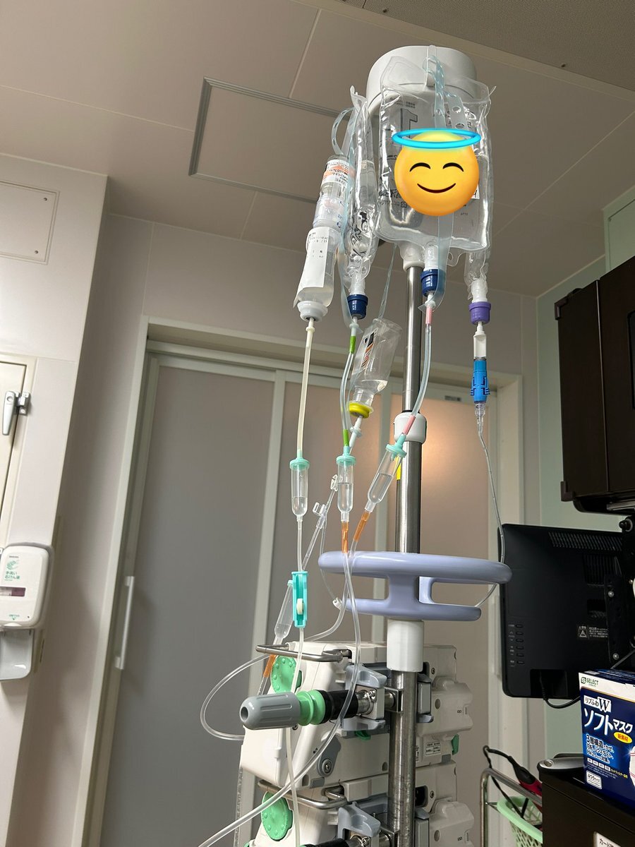 抗がん剤3回目🫥🫥 点滴のサイクルが23時と27時にもある +点滴の量が多くてトイレの回数が増えた ことで めっっっちゃ寝不足😪😪 深夜に点滴つける時 勝手にやってほしいのに 検温と血圧測るせいで 絶対起こされるんよなあ、、やめてほしい 今のところ副作用は なし💪😤 #急性骨髄性白血病 pic.x.com/8KjDK9GOR8