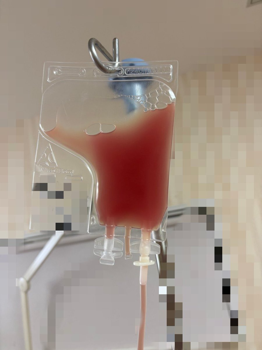 個人が特定されないように少し前の話になるんだけど移植のときのこと 写真はわたしから採取した造血幹細胞です 普通の血液より色が薄め🤔 1パック70mlでそれが3パックの合計210mlの移植 #急性骨髄性白血病 #ドナー pic.x.com/kQ6sq5Vpor