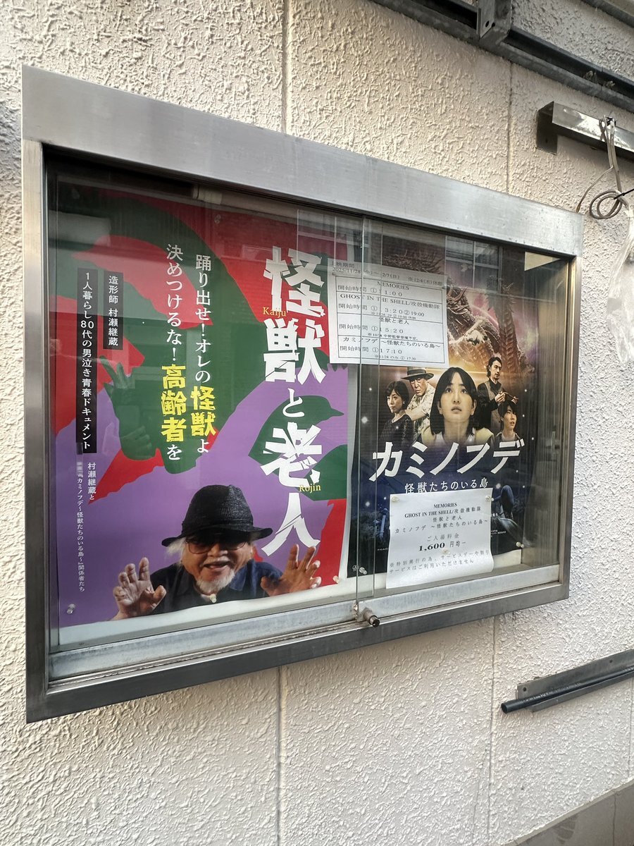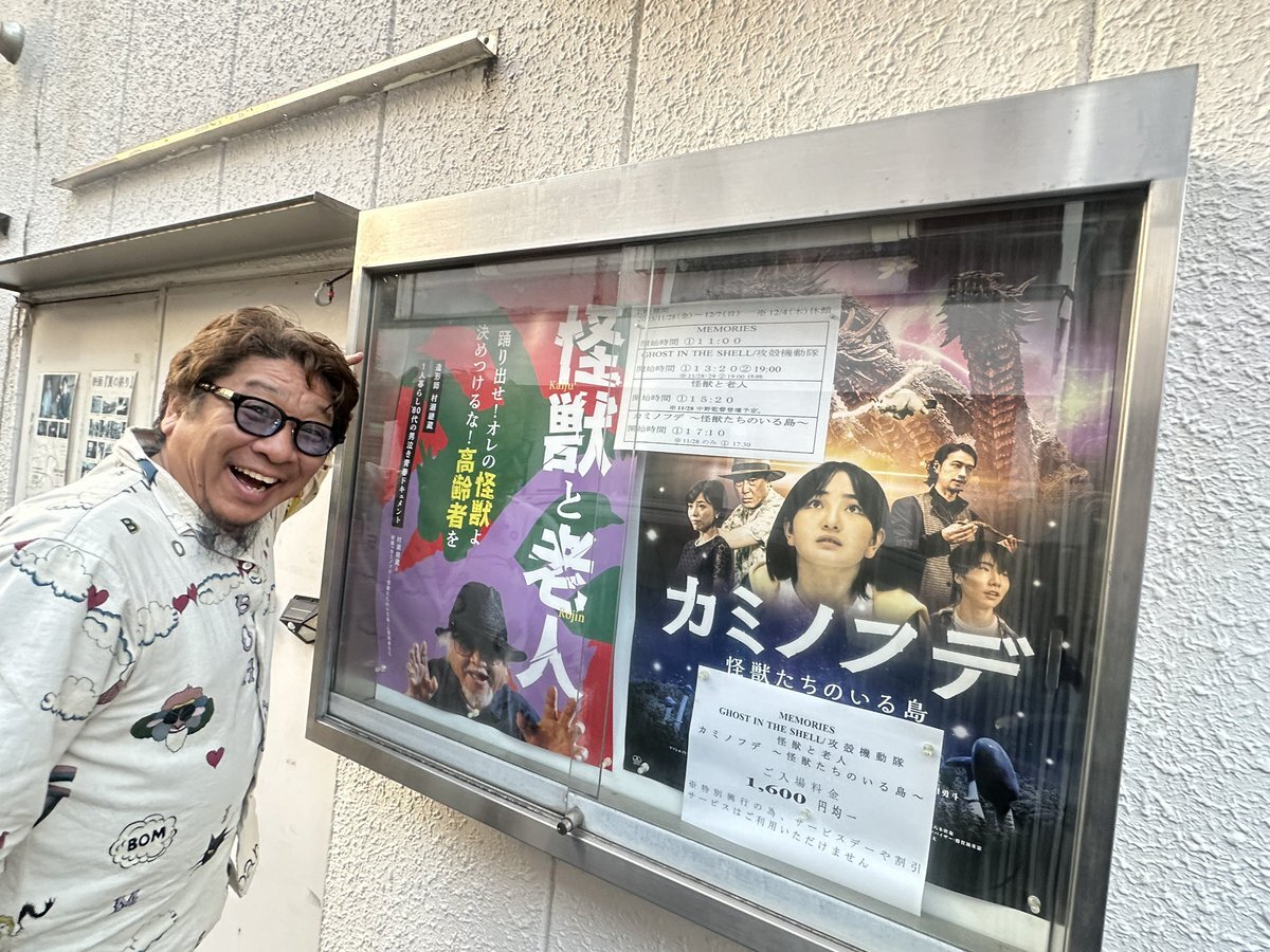 #怪獣と老人 #シアターセブン 本日だけ上映時間はお引越し 15:50(~17:17)からになります!お間違えなく! 席は余裕シャクシャクです! 「80代の高齢者なんて見たくないわ!」という方、ぜひ魅力あふれてかわいい村瀬継蔵さんに会いに来てください! 魅力のない中野監督がロビーをウロウロしてます pic.x.com/HYjRbELQ9j