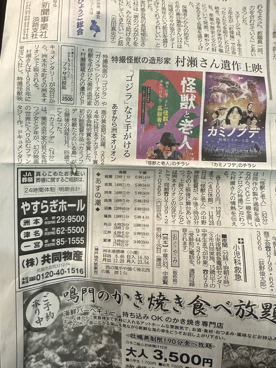 #怪獣と老人 いよいよ洲本シアター本日から上映開始です! 今日も朝からいろんな島民の方にチラシ配りで対応して頂きました! ドブ板ど底辺キャンペーンやりつくし、あとは皆様お待ちしておりまーす! #村瀬継蔵 #洲本オリオン pic.x.com/8Uiw6ezwZP