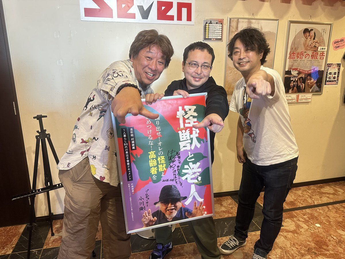 #シアターセブン 上映2日目、無事終了! 本日も過半数で換算すると満席!村瀬直人さんと一緒に琵琶湖ロケの撮影をしてくれた中村さん兄弟、 カミノフデを観た方、 大阪NHKの大演出家、博多のプロレスラー、村瀬さんの親戚関係の方、ポスターデザイン茂原綾香さんらが来て頂きました!#怪獣と老人 pic.x.com/4pxbHX6EJA