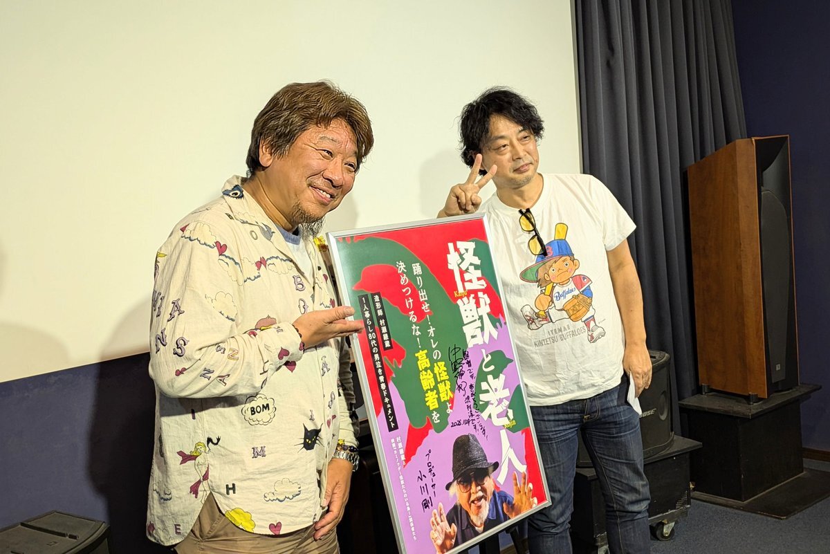 #怪獣と老人 #洲本オリオン #シアターセブン 洲本オリオンでの初日、終えました! お客様ともクロストークできて最高でした! 野口館長!木村幸一さん! お世話になりました! 大阪に移動しますが明日からもよろしくお願い致します! pic.x.com/2bUNYPjqBx