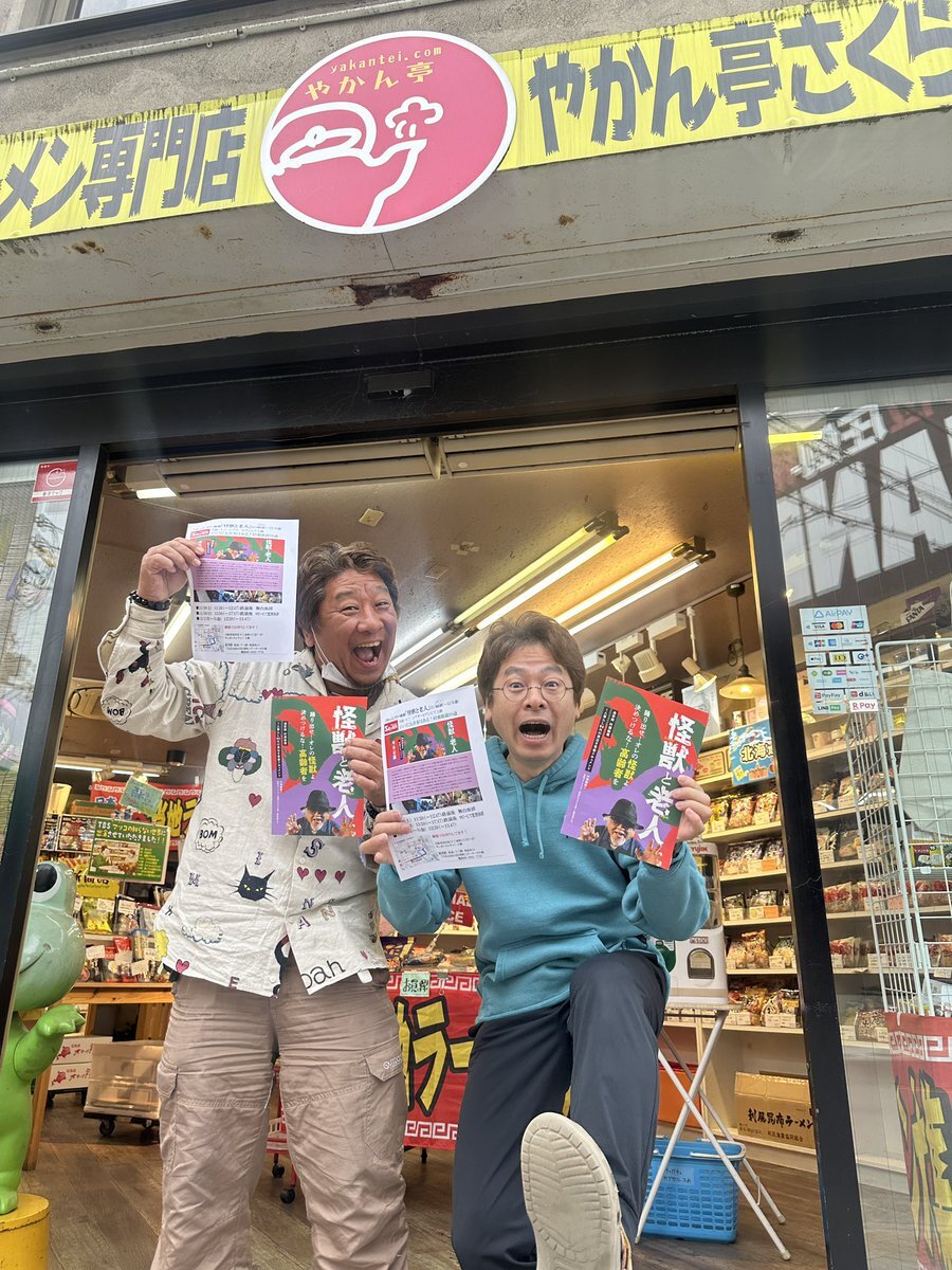 #インスタントラーメン専門店 #やかん亭 #大和イチロウ インスタントラーメンはもちろん食文化研究のカリスマ、大和イチロウさんにチラシお渡しできました!急な連絡にも関わらず対応頂きありがとうございました! お父様と #村瀬継蔵 さんがすれ違っていたかもとの話も驚きました!#怪獣と老人 pic.x.com/omLRJx5y0e