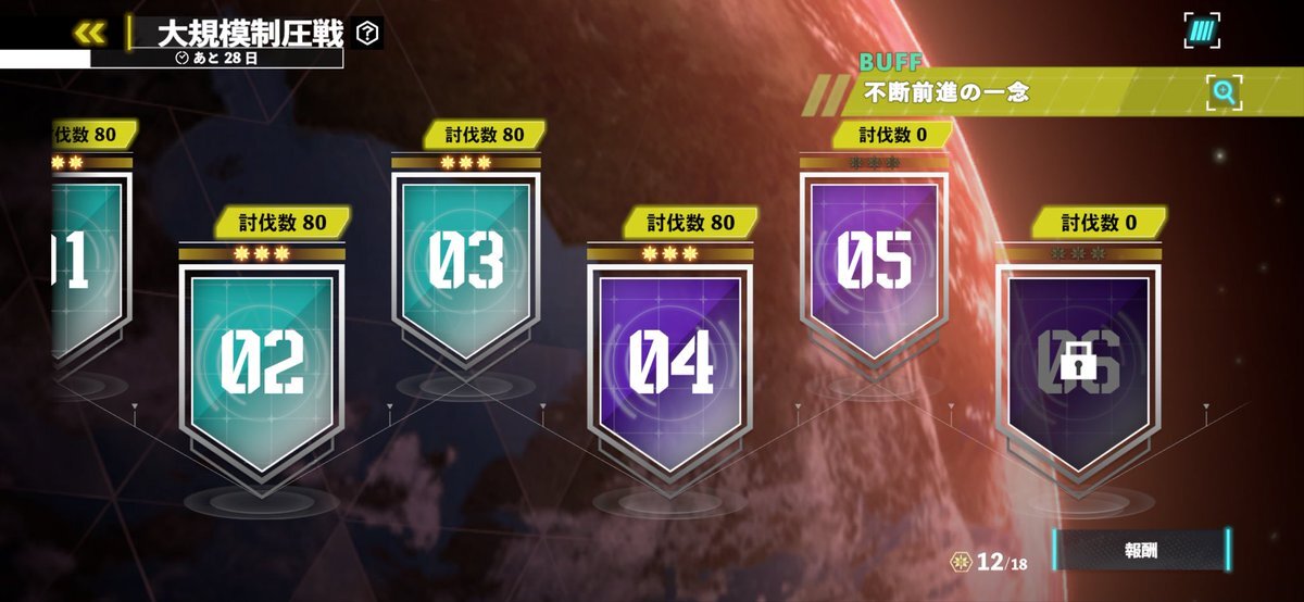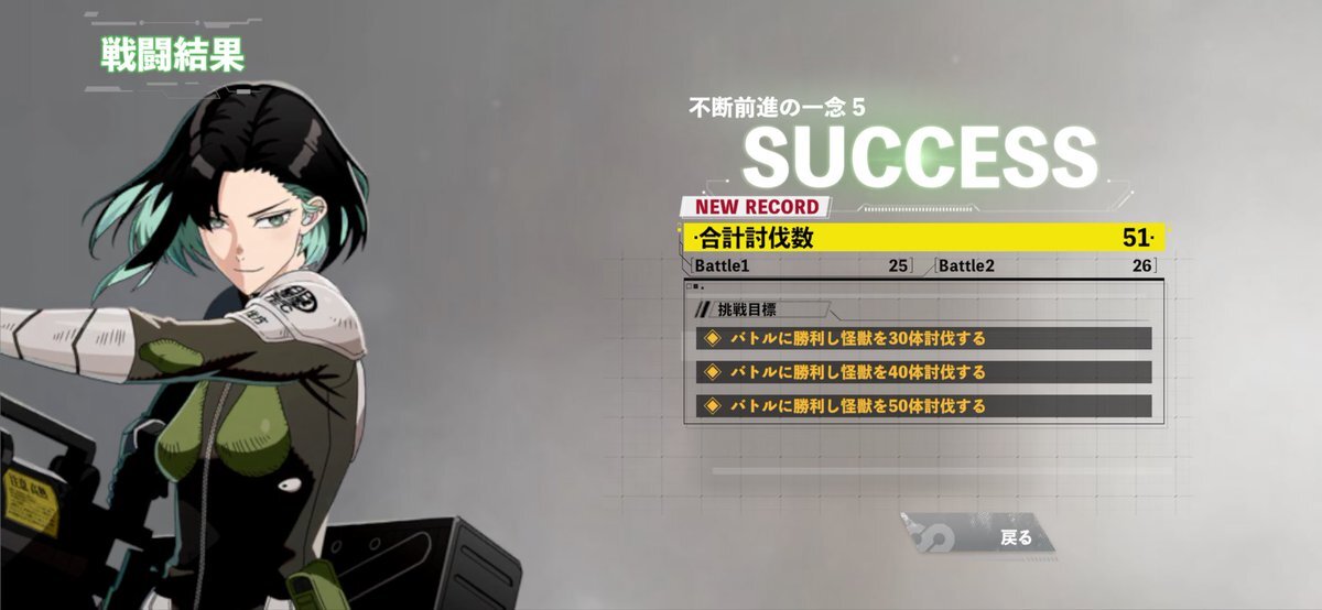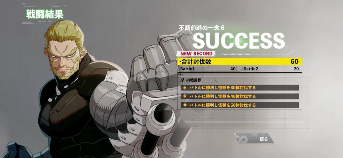 制圧戦「#不断前進の一念」 ・ステージ5 ・ステージ6 AUTO星3でクリアしました!! 合計討伐数68完了です!( •̀ω•́ゞ)✧ビシッ!! たろまる(@5628x )さん、ステージ5のアドバイスありがとうございました!(´▽`) #大規模制圧戦 #制圧戦攻略メモ📝 #怪獣8号THEGAME #kaijuno8thegame