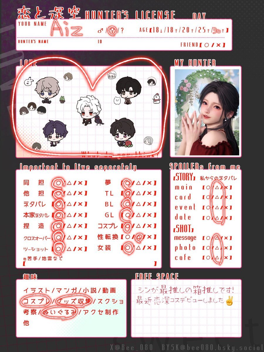 #恋と深空好きな人と繋がりたい #恋と深空レイヤーさんと繋がりたい #GWはフォロワーさんが増えるらしい 滑り込み🏷️ 月影ハンターにメロついてる女です レイヤーさん問わず深空のお話できる方と沢山繋がれたら嬉しいです‼️ その他深空以外にも雑多にコスプレしてます(3枚目)✨️ pic.x.com/mtAcYoTNWZ