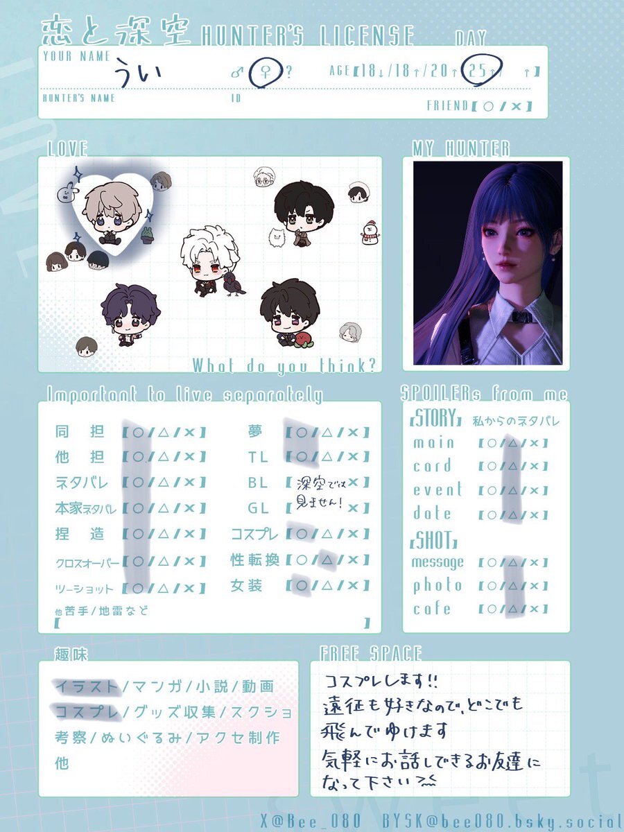 🏷️失礼します🙇♀️ 東海/20↑ 恋深中心の雑多レイヤーです❕ 九州から関東まで、たまに遠征します✈️ 他》bll、twst、HQ…など 全反応巡回します🌟 #コスプレイヤーさんと繋がりたい #恋と深空レイヤーさんと繋がりたい #bllレイヤーさんと繋がりたい pic.x.com/LiqSyRlGVl