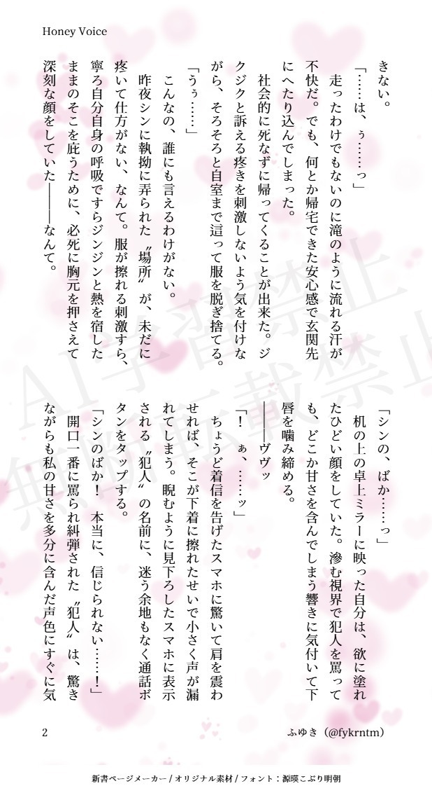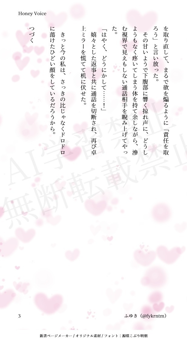 Honey Voice(3/3) シン主 🗝で呟いていたネタの、シンに🥧ばかり弄られて翌日もどうしようもなく疼いちゃう主ちゃんと責任を取るシンのお話(続きは如何わしいので書き上がり次第privatterか🗝に載せる予定です) #ladプラス #恋と深空二次創作 pic.x.com/EKNAeVCaBu