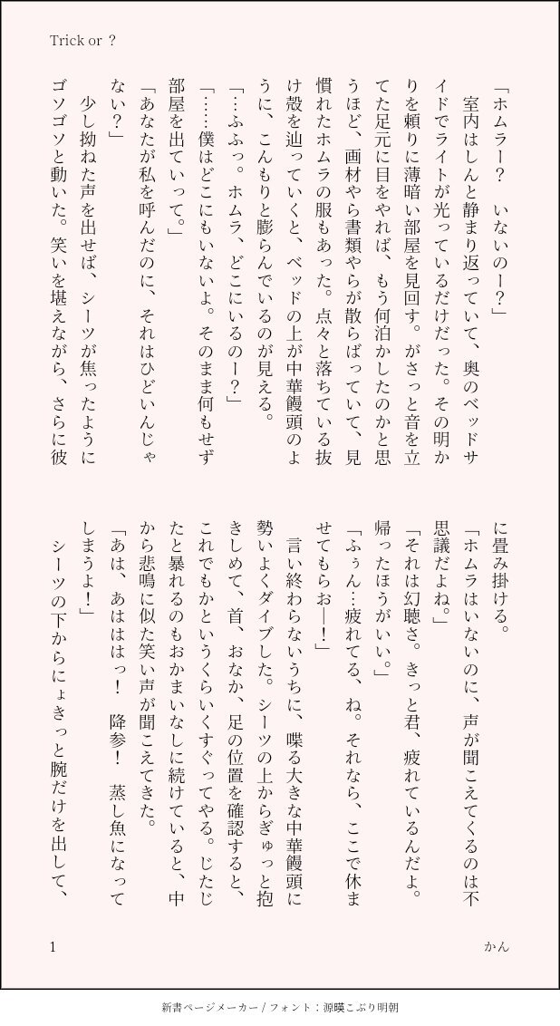 ハロウィンパーティー(ホムラルート) ✍なかなかパーティーに来ないホムラの部屋へ向かうと… ⚠私≠主人公 (1-4/5) #ladプラス x.com/kn974091462558…