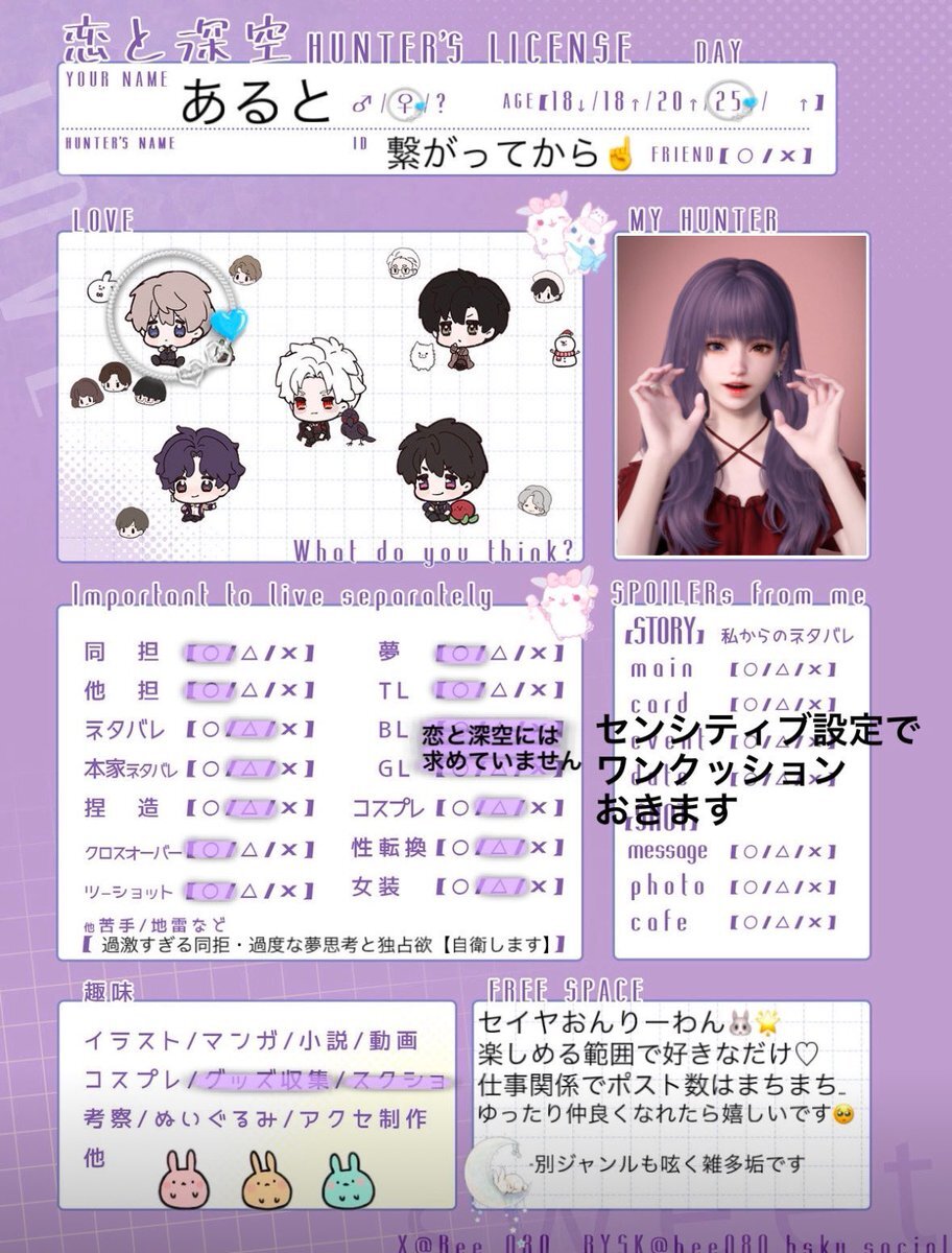 🐰🌟💜𓂃⟡.· Ver4.0に向けてお友達探しです✧︎ 仲良くしていただけると嬉しいです🙂↕️ 詳細はALTへ♡ RP or ♡でゆっくりお迎えにいきます🔖 .· #恋と深空 #恋と深空好きさんと繋がりたい #恋と深空好きと繋がりたい #恋と深空好きな人と繋がりたい