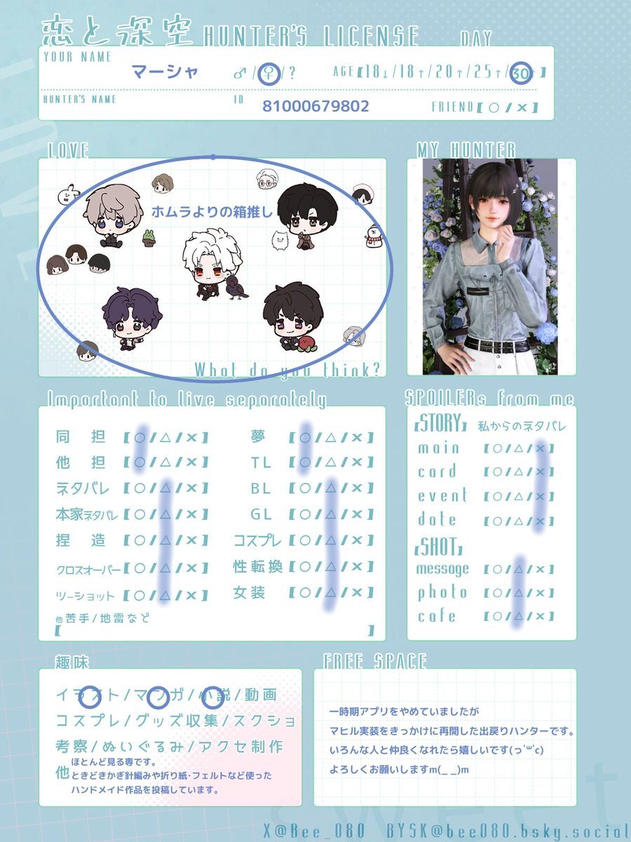 色々落ち着いたので自己紹介カード更新します。 Age30↑・関西在住・雑多垢ですが、仲良くしてくれたら嬉しいです。 いいねorRP頂けたらゆっくりですがお迎えに行きます! よろしくお願いします🙇♀️ #恋と深空自己紹介カード #恋と深空好きな人と繋がりたい #恋と深空好きと繋がりたい pic.x.com/3Z4zsHsloP