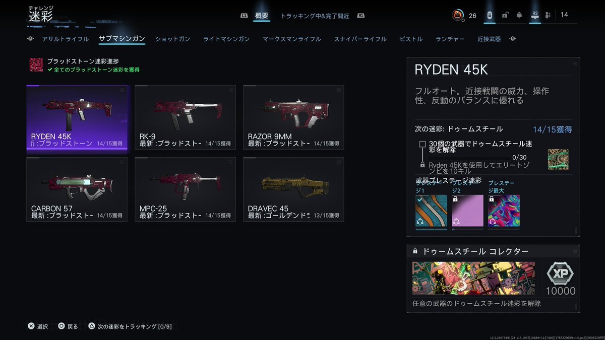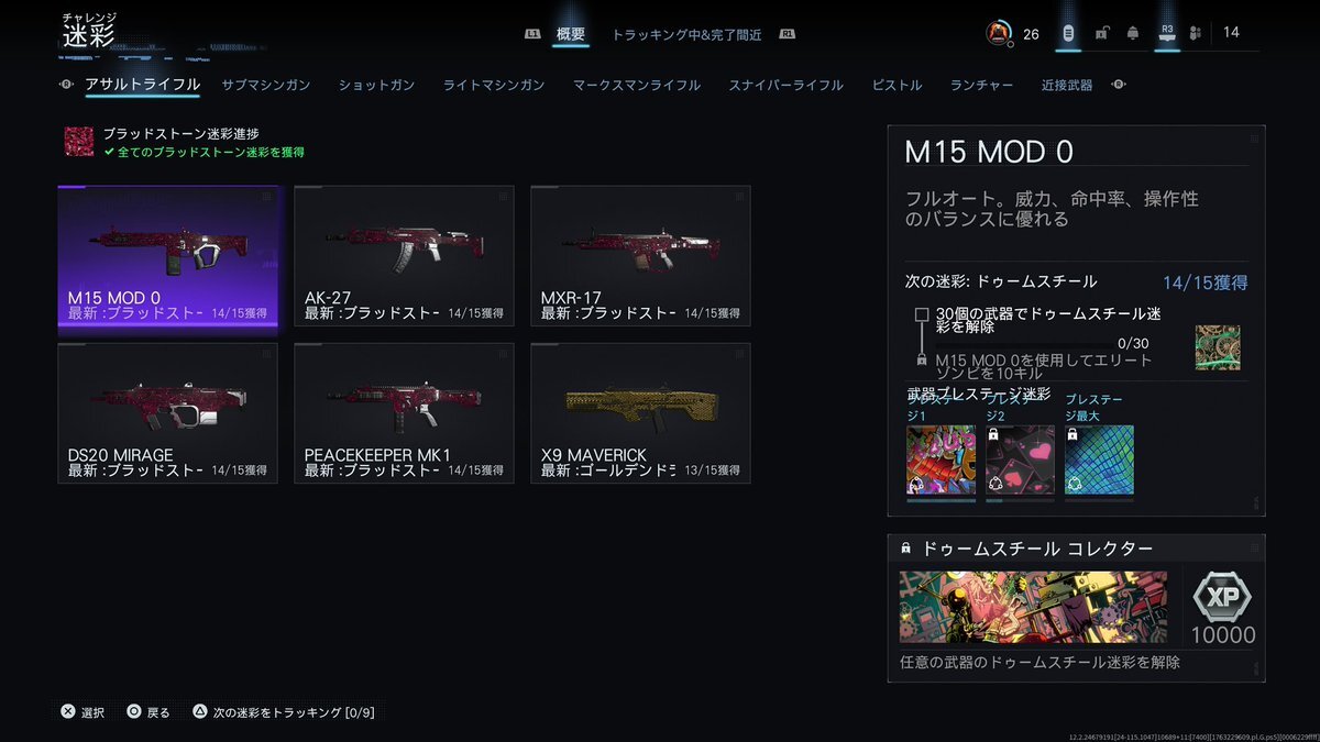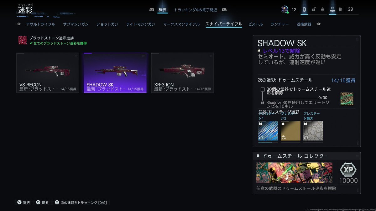 AR、SMG、SG、LMG、ハンドガン[完] マークスマンが2本ゴールド終了。 あと、8本…😇やっと1桁か…(小声) #PS5 #CaIIofDuty #BO7 #COD #BIackOps #ゾンビ #ゾンビ迷彩 #恒例行事 pic.x.com/o5ZVdPzDsA
