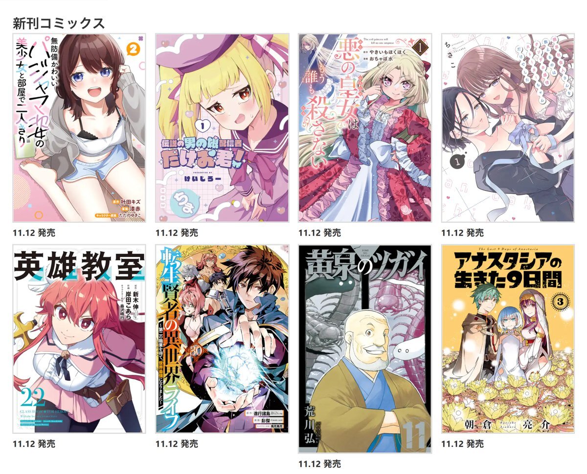 #SQUARE ENIX 新刊コミックス入荷‼️/ 11/12発売⭐️その①₍₍(ง˘ω˘)ว⁾⁾ 📺2026年4月からTVアニメ2クール放送開始‼️ 特典イラストカード封入🌟 #黄泉のツガイ #転生賢者の異世界ライフ #悪の皇女はもう誰も殺さない #限界社会人さんを救えるのはクソデカ感情ストーカーちゃんだけでした …etc‼️ pic.x.com/ABQbTn6586
